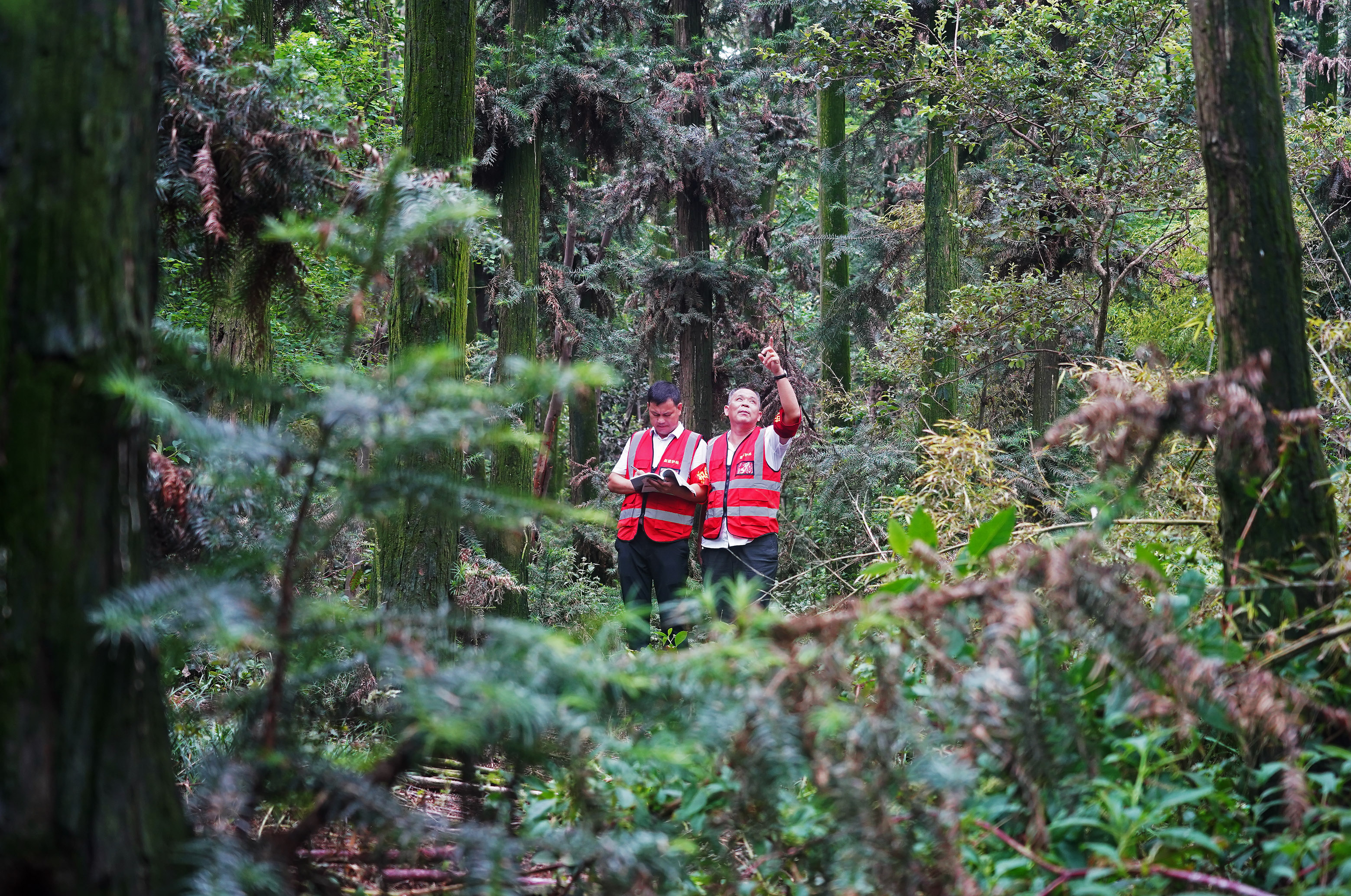 8月17日,象山森林公园工作人员在巡护白鹭栖息的森林。