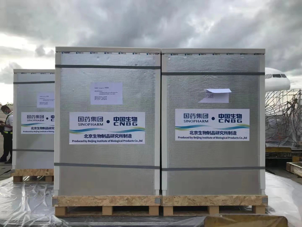 当地时间8月28日晚,缅甸政府从中国采购的200万剂国药新冠疫苗运抵仰光国际机场。