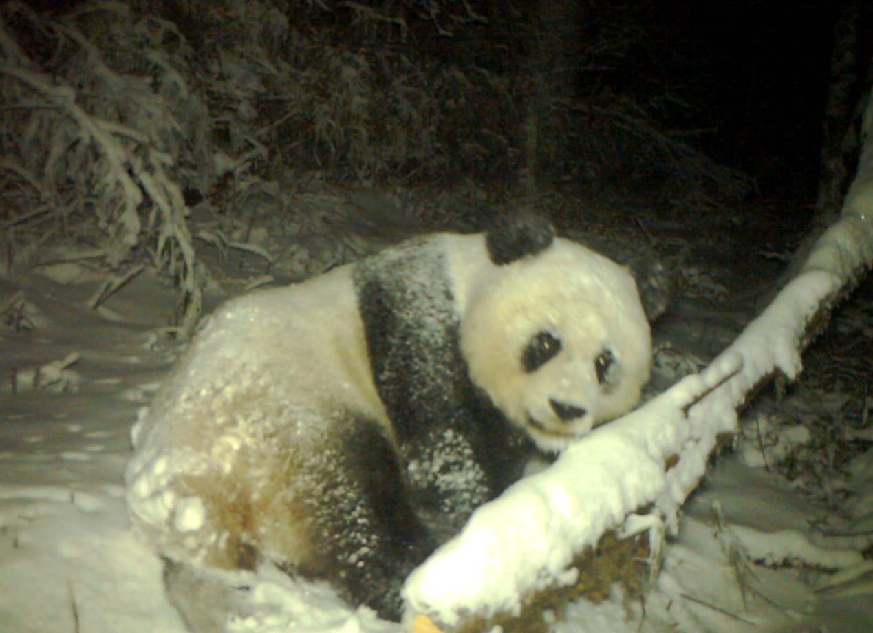 ↑大熊猫“歪头杀”照片。(四川蜂桶寨国家级自然保护区管护中心供图)