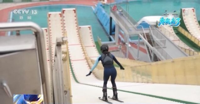 7月22日,在秦皇岛训练基地,徐梦桃正跟随国家集训队开展跳水训练。头盔、救生衣、滑雪服一系列装备把她裹得严严实实的。在30多摄氏度的高温下,普通人如果穿成这样,很难坚持,但运动员们仍然一丝不苟地循环往复。助滑、起跳、落水,然后看视频回放查找问题