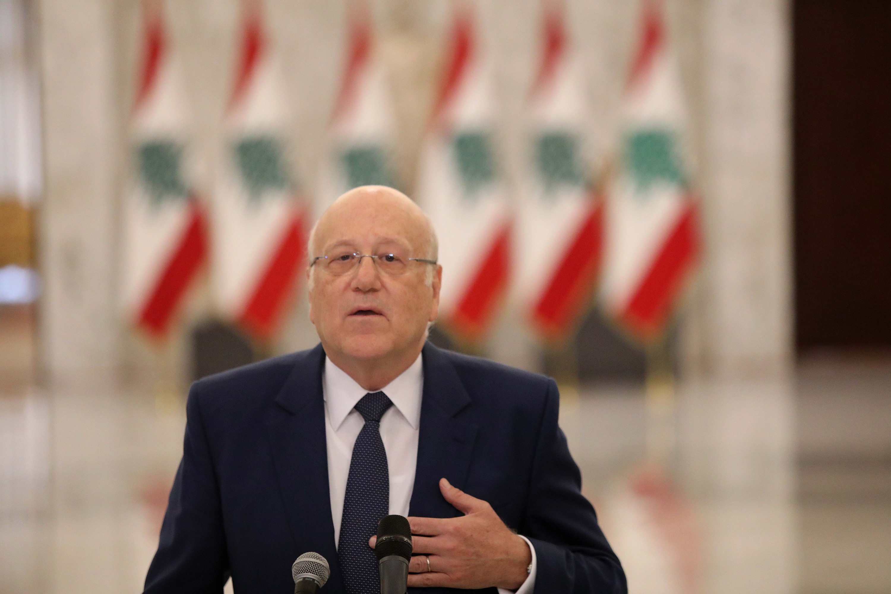 7月26日,在黎巴嫩总统府巴卜达宫,纳吉布·米卡提被任命为黎巴嫩新总理后发表讲话。(新华社发,比拉尔·贾维希摄)