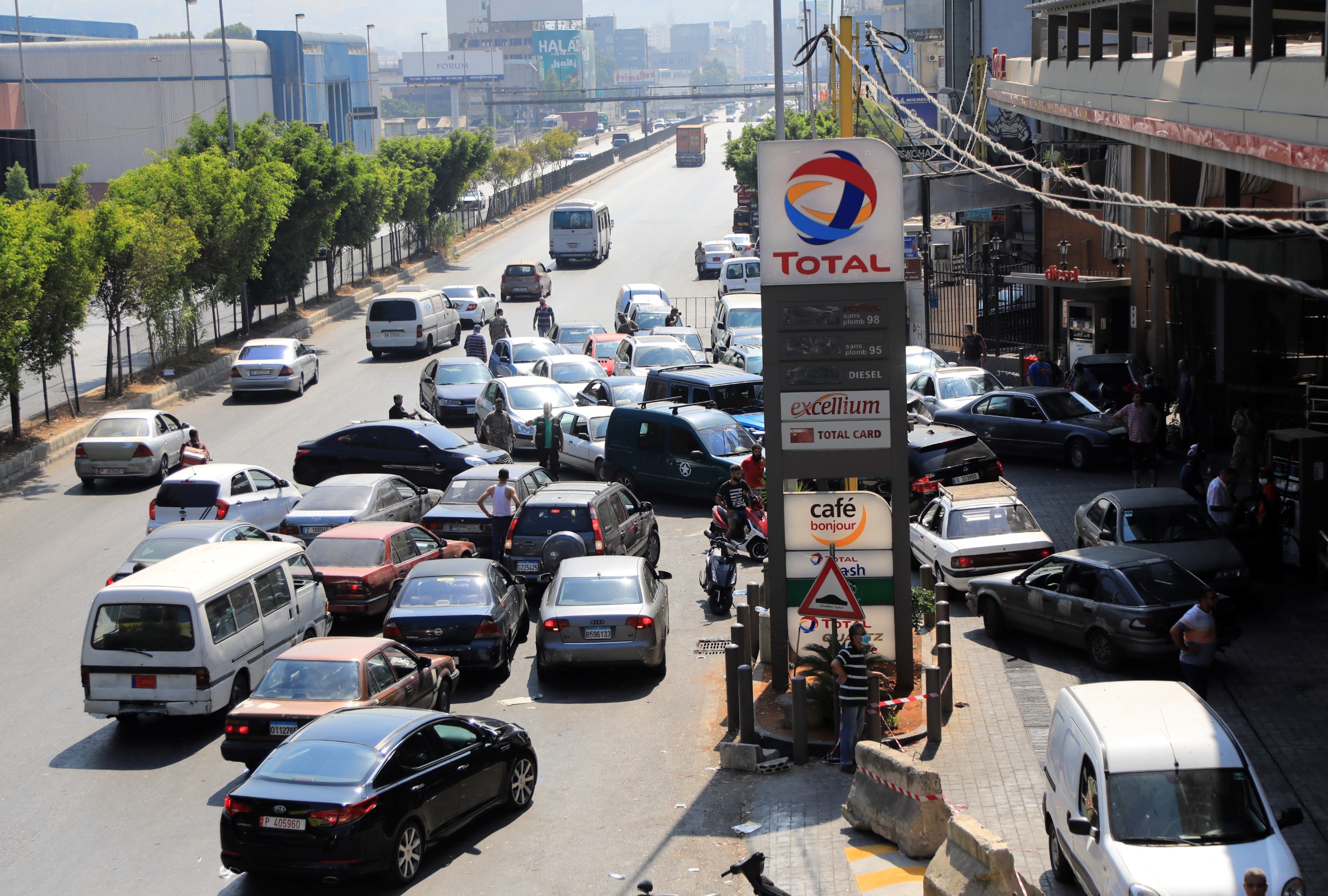 8月21日,车辆在黎巴嫩贝鲁特港附近的加油站排队加油。(新华社记者刘宗亚摄)