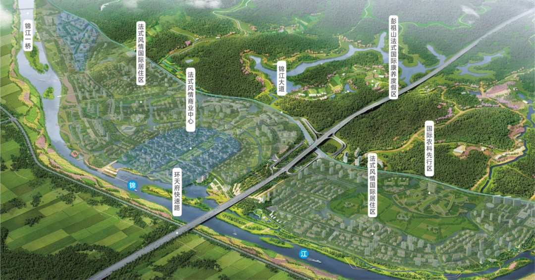 川西高原之下,岷江支流锦江之侧,依山傍水,坐拥锦江文化生态带,与国内十大水乡古镇黄龙溪相对,背靠省级风景名胜区—彭祖山,南毗邻四川省历史文化古镇江口镇,超6000亩的中法农业科技园便落子于此。