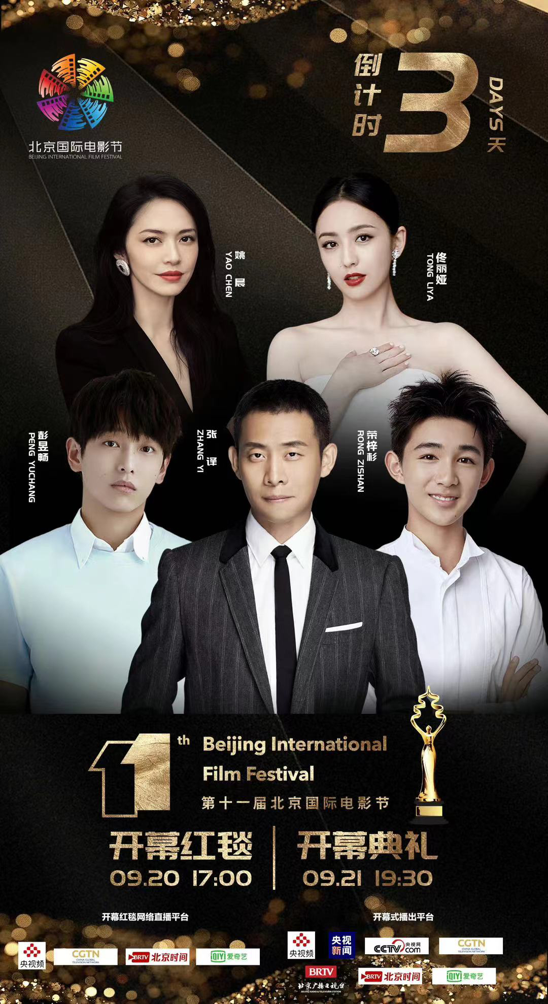 9月20日,第十一届北京国际电影节红毯仪式与开幕典礼在当晚开幕。封面新闻记者从组委会获悉,出席开幕式红毯及开幕式典礼的嘉宾包括巩俐领衔的“天坛奖”国际评奖委员会、演员杜江、彭昱畅、佟丽娅、姚晨、张译、于和伟、李宇春、郑云龙、周冬雨、朱一龙等众多艺人,封面新闻记者将在现场直击北影节红毯仪式,第一时间报道北影节盛况。