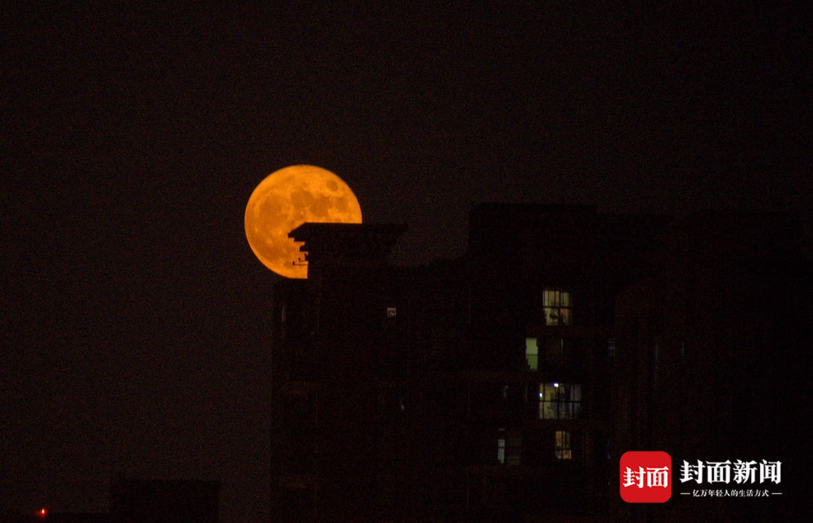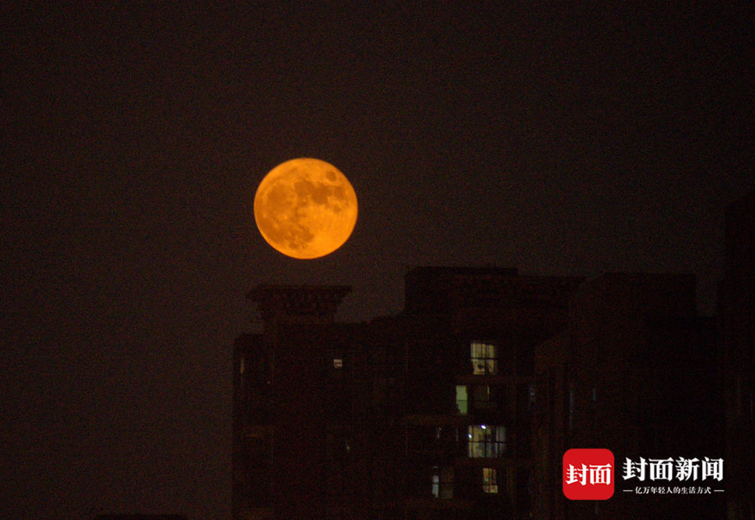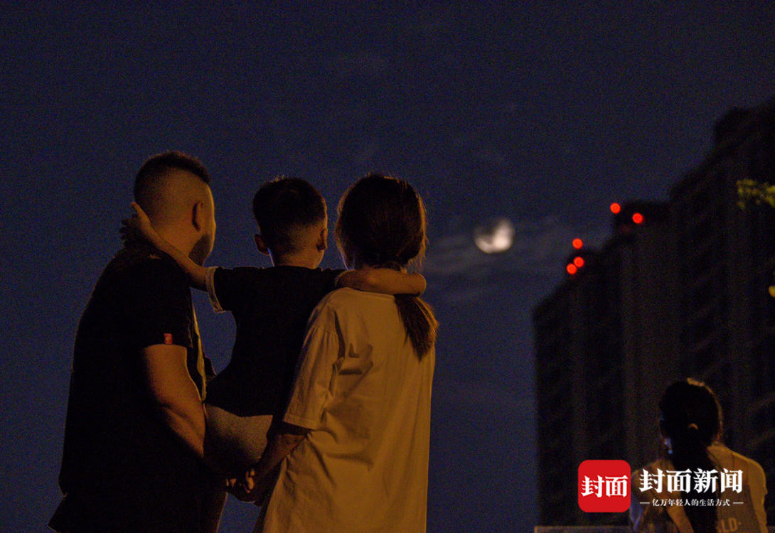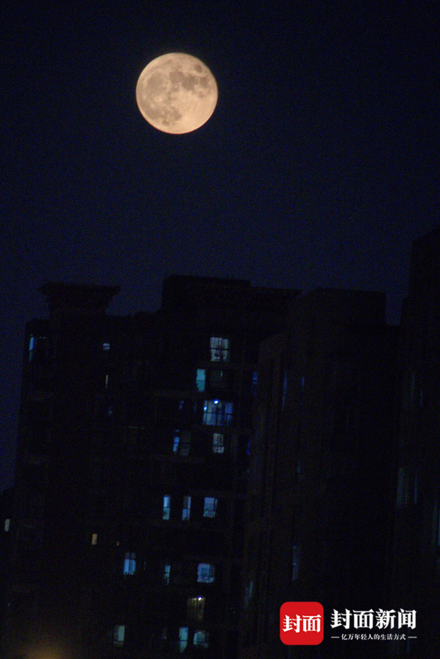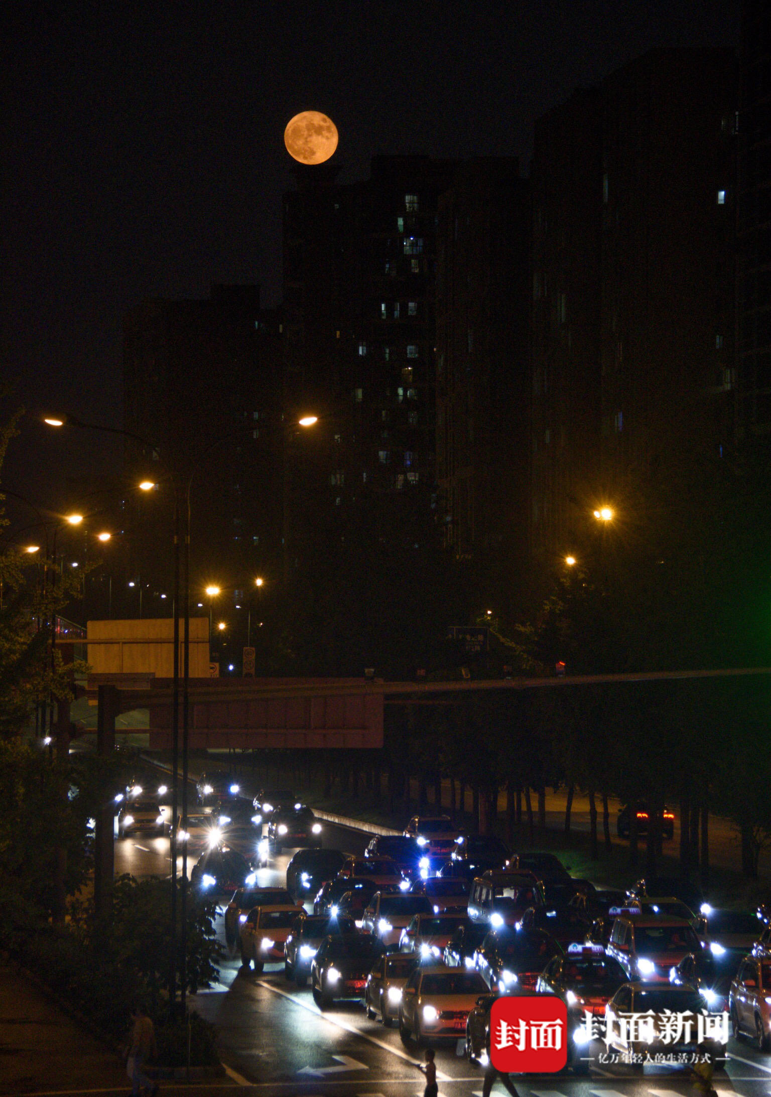 对成都人来说,中秋节这天能看见明月高挂空中,真是一件难得的事。今天晚上七点三十分,一轮圆月从东边升起,引得路上行人驻足观赏,让人欣喜不已。