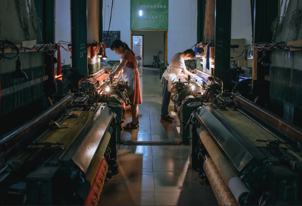 由于设备老旧,从业人员稀缺,胡光俊所在的成都古蜀蜀锦研究所中,每位工人每天最多能生产蜀锦面料1.5米。产能低,人工成本高等客观原因,都影响着蜀锦的定价。蜀锦织造有四大工种,近70道工序,可早在90年代,工人们便利用机器,让工序变成程序。