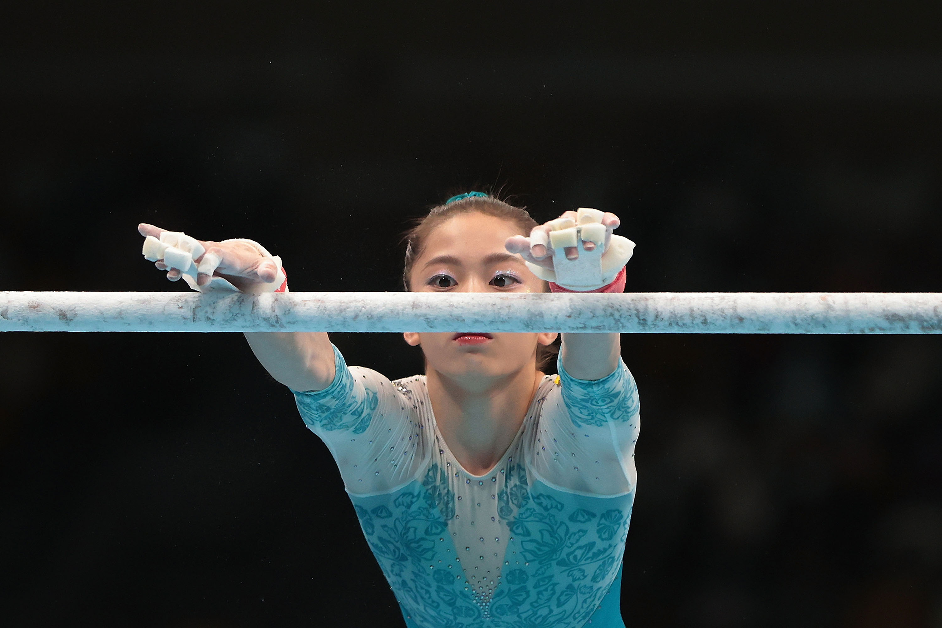 高低杠上竞争激烈。东京赛场曾出现较大失误的范忆琳开场便拿到15.200分的高分。芦玉菲动作略有瑕疵最终位列第二。前一日个人全能摘金并在高低杠项目拿下最高分的韦筱圆拿出一套较高难度动作,可惜杠间连接动作略有失误,收获一枚铜牌。
