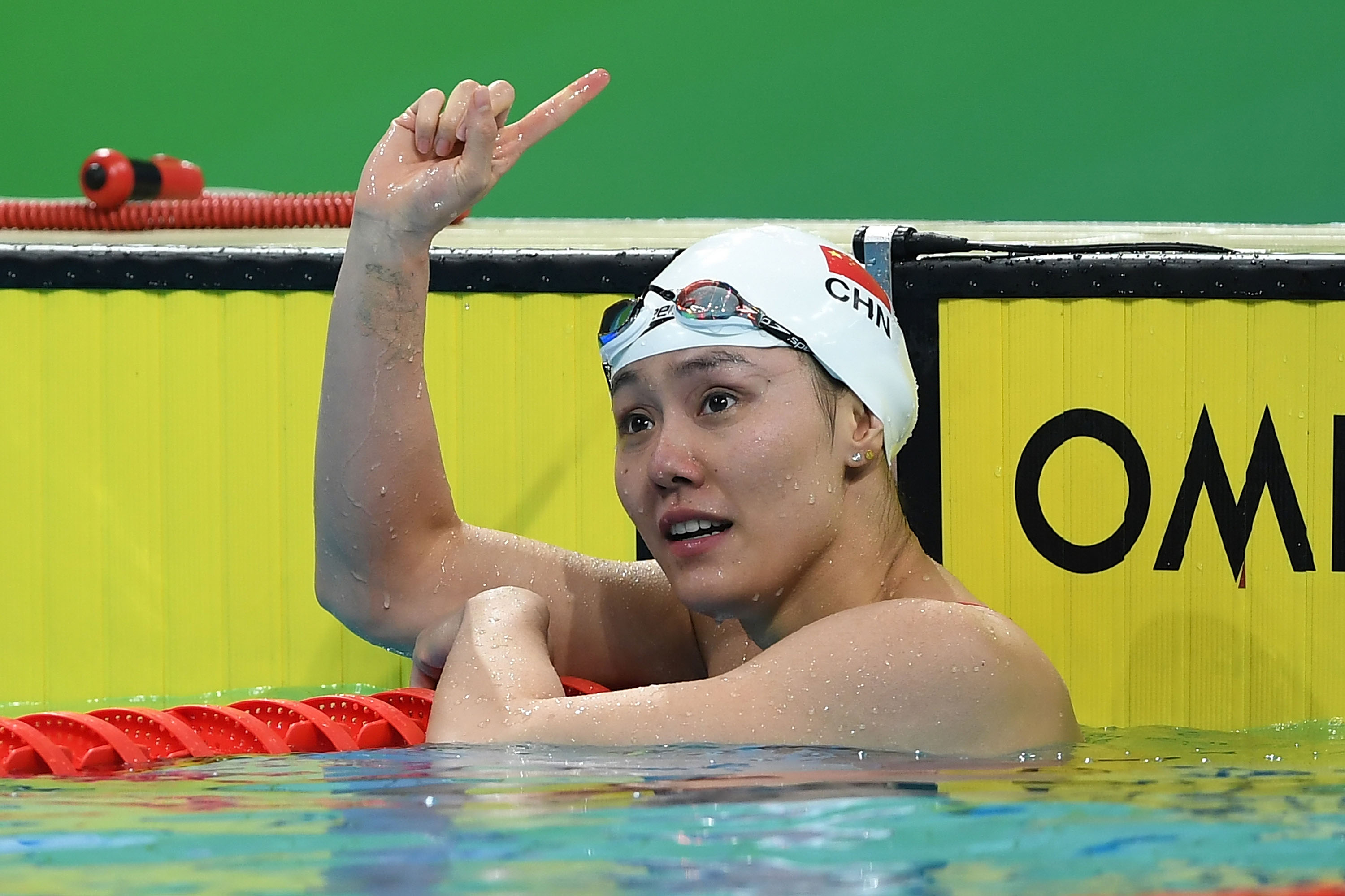 9月26日,广东队选手刘湘在比赛后庆祝,她以23秒97的成绩创亚洲纪录并获得冠军。新华社记者薛宇舸摄