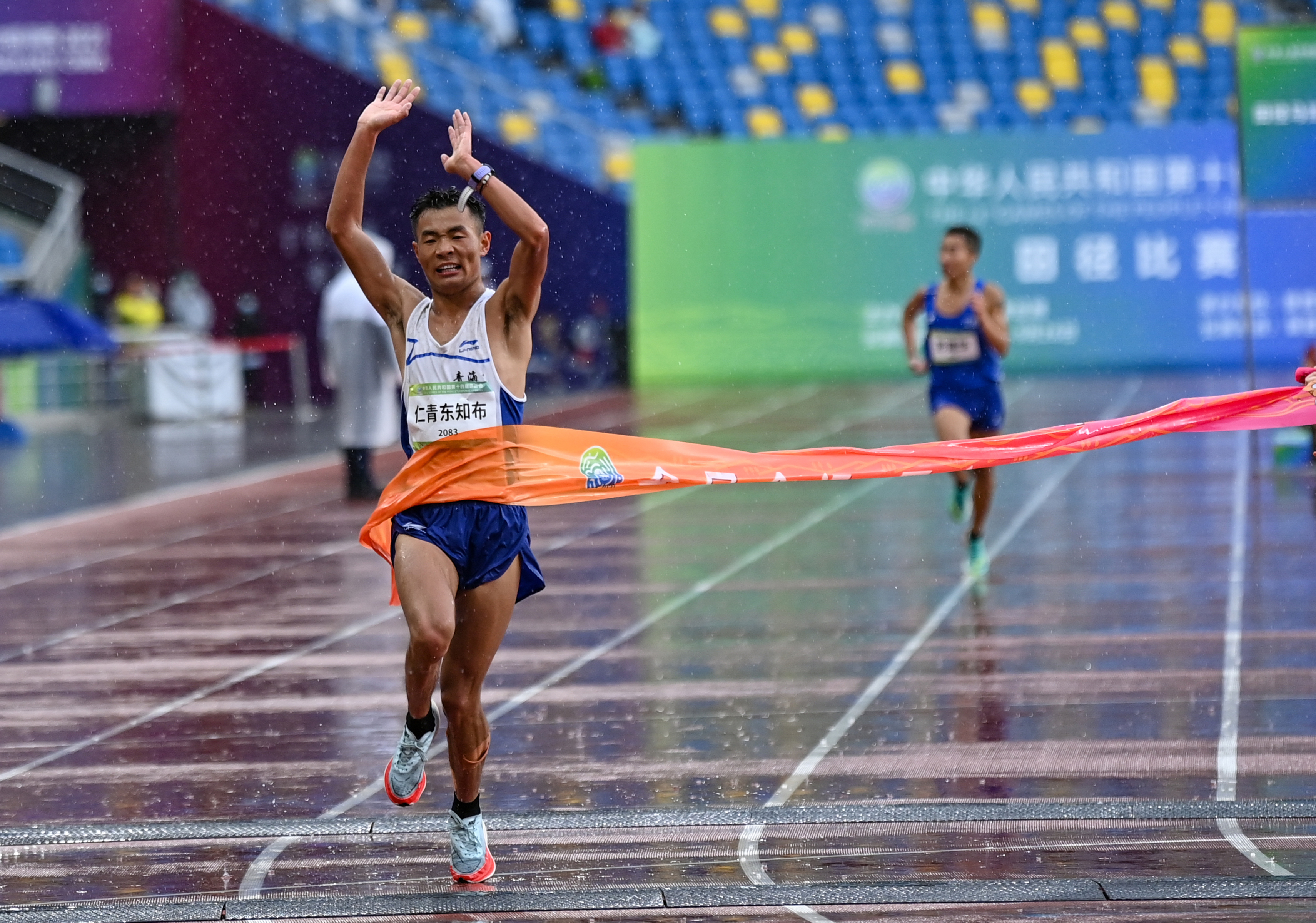 马拉松项目在雨中进行,去年底刚转这个项目的张德顺再创奇迹,获得女子马拉松冠军,男子马拉松金牌被首次参加全运会的青海“00后”选手仁青东知布摘得,两位奥运参赛选手彭建华、杨绍辉分获二三名。