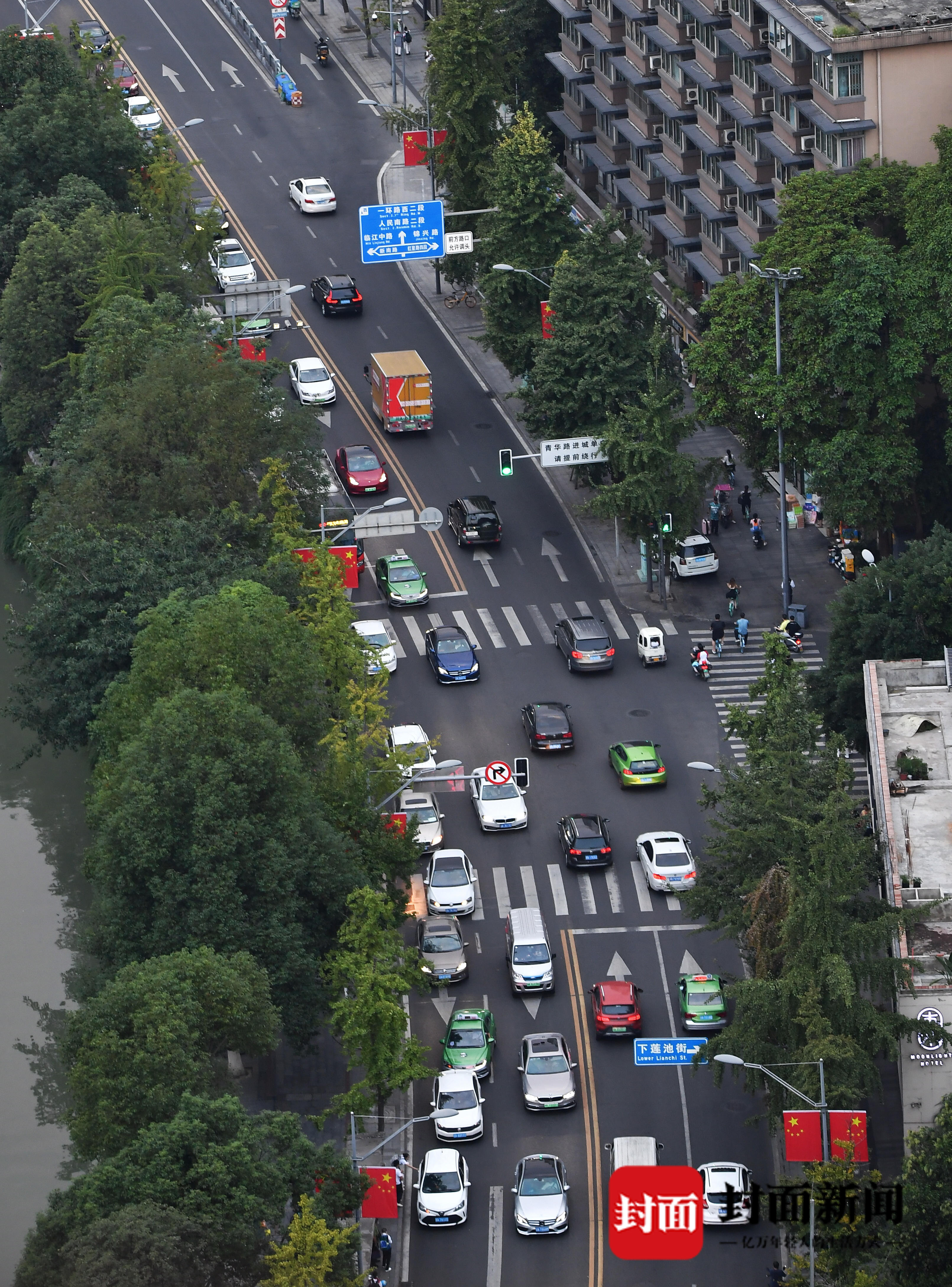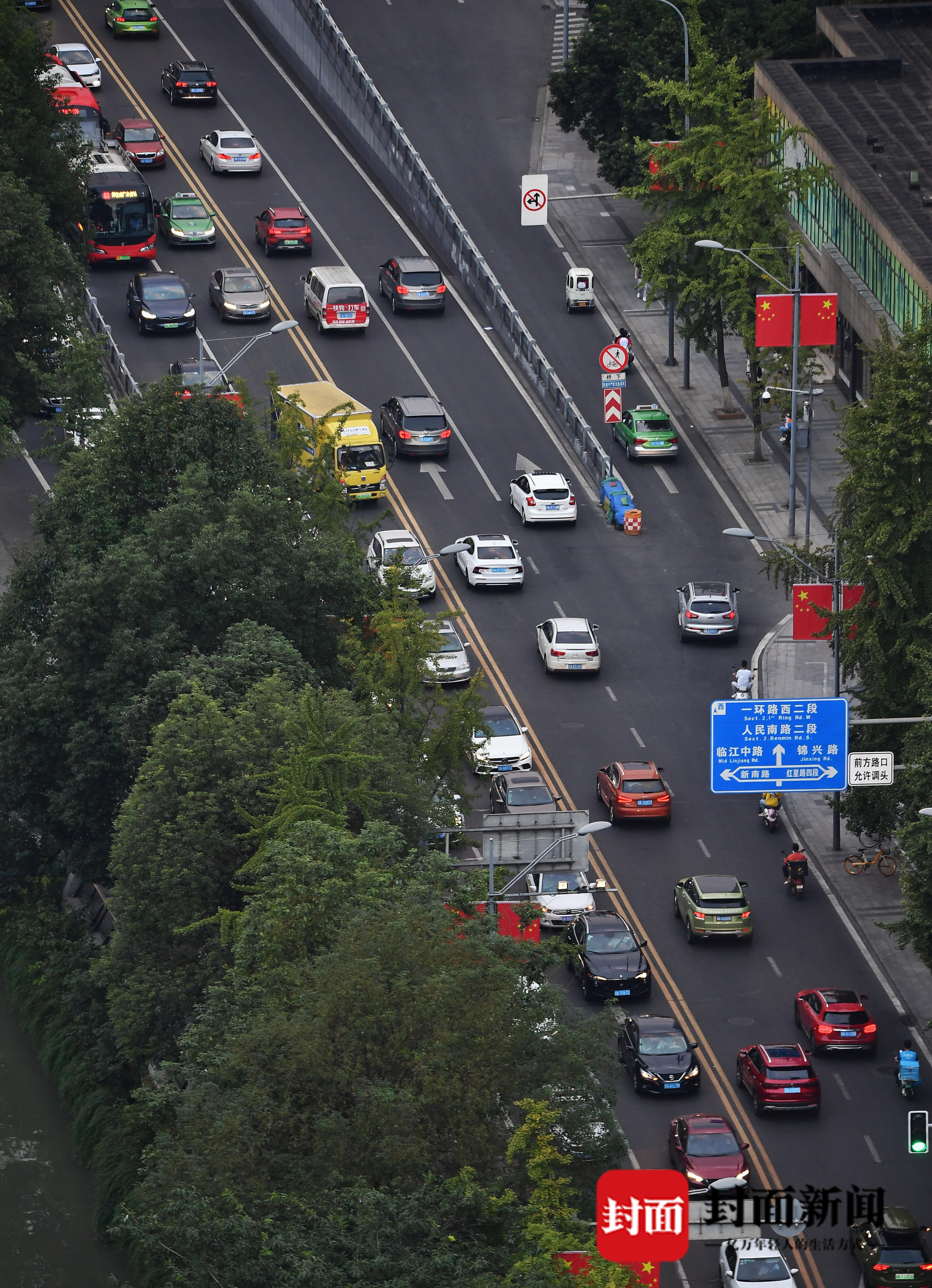 9月30日黄昏,成都城区滨江路交通顺畅。