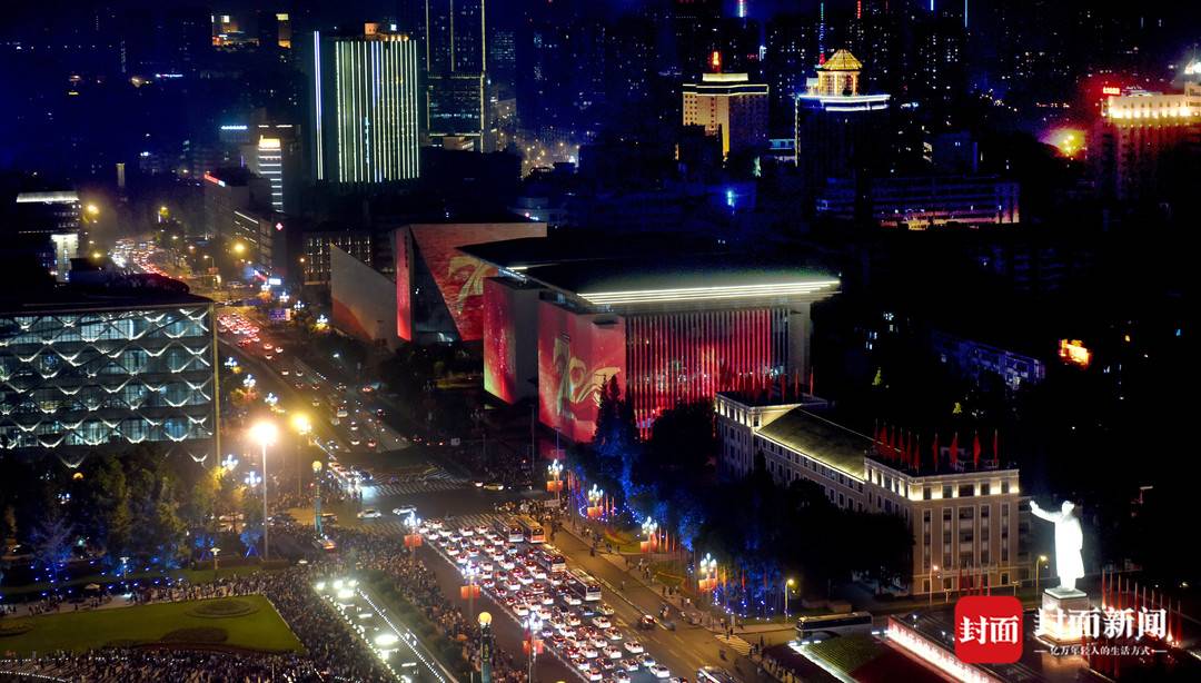 2019年10月1日国庆之夜,天府广场等地标建筑首次上演灯光秀,庆祝中华人民共和国成立70周年