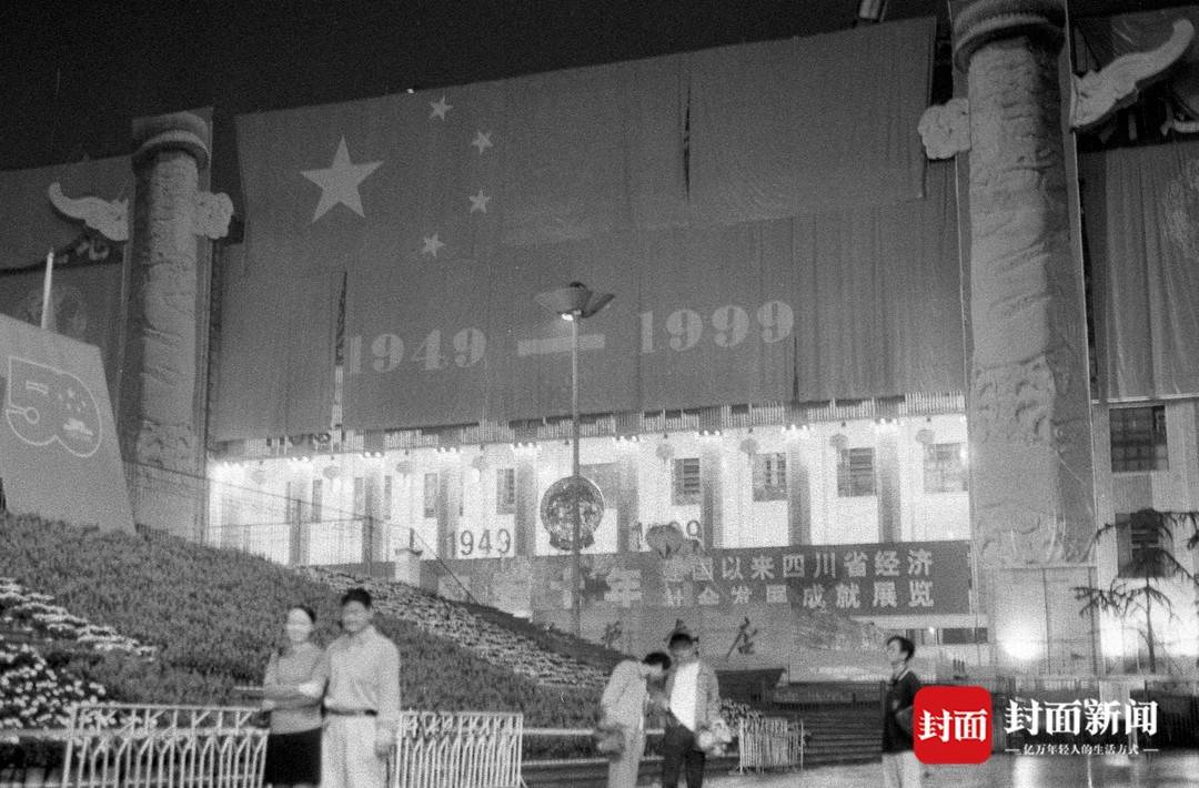 这些照片摄于上世纪90年代和本世纪初的照片。那时候,旅游还没有这么火爆,许多 成都市民都会去天府广场看国庆节的升旗。特别是1999年国庆最热闹,那年是50周年 大庆,国庆节头一天的夜晚,天府广场的省展览馆挂起了巨幅国旗,许多市民当晚就 前来观看。国庆当天,天府广场更是热闹非凡,市民峰拥而至,人们挥舞着国旗,纷 纷拍照留念,共庆祖国50周年华诞。
