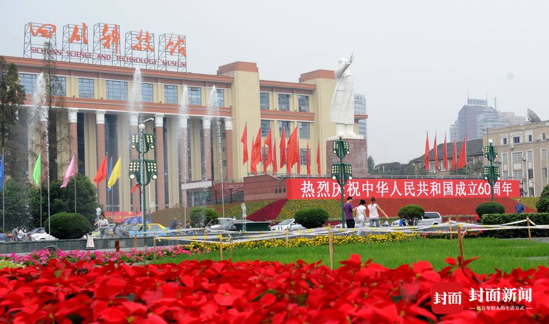 2009年国庆,成都天府广场鲜花簇拥,喜迎国庆。