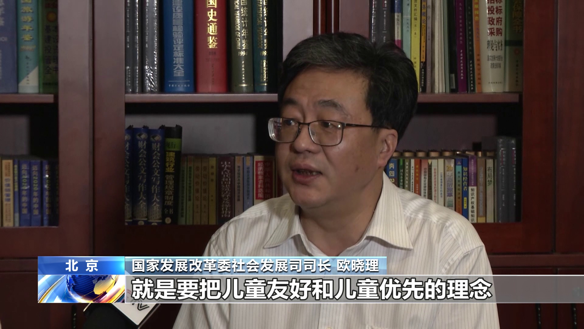 国家发展改革委社会发展司司长 欧晓理: 目前,我国的城镇化率已达60%,城市是越来越多的儿童成长的最重要的外部环境。儿童优先的理念就是要坚持公共事业优先规划、公共资源优先配置、公共服务优先保障。儿童友好城市建设,就是要把儿童友好和儿童优先理念融入各项社会政策。