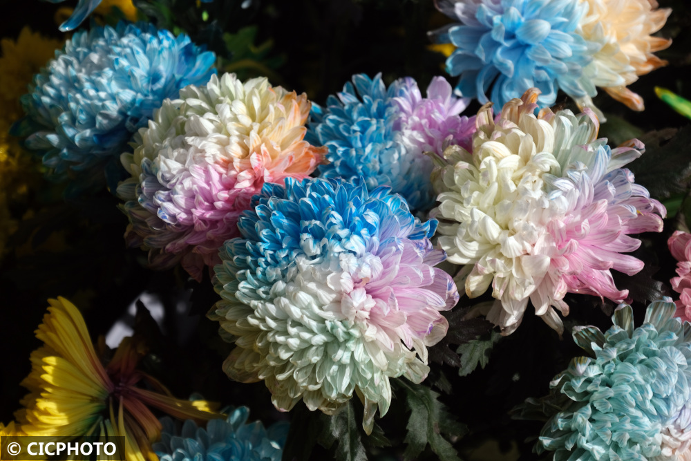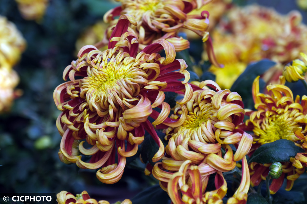 ↑2021年10月10日在辽宁省沈阳市北陵公园拍摄的菊花。CICPHOTO/黄金崑 摄