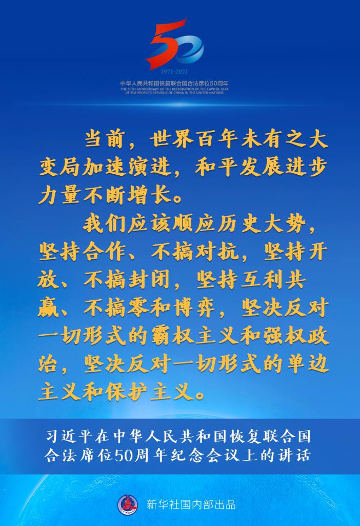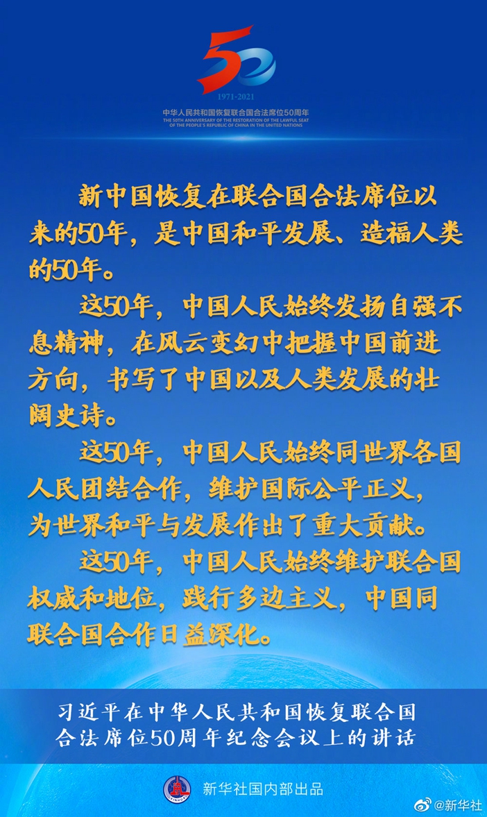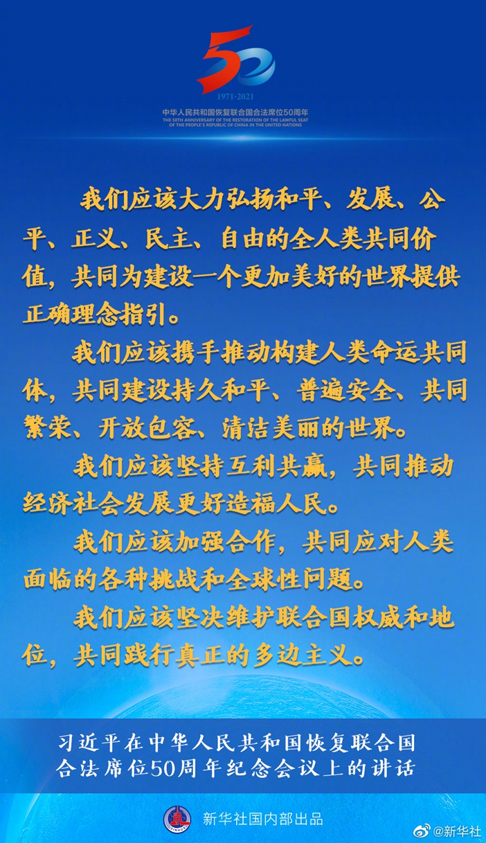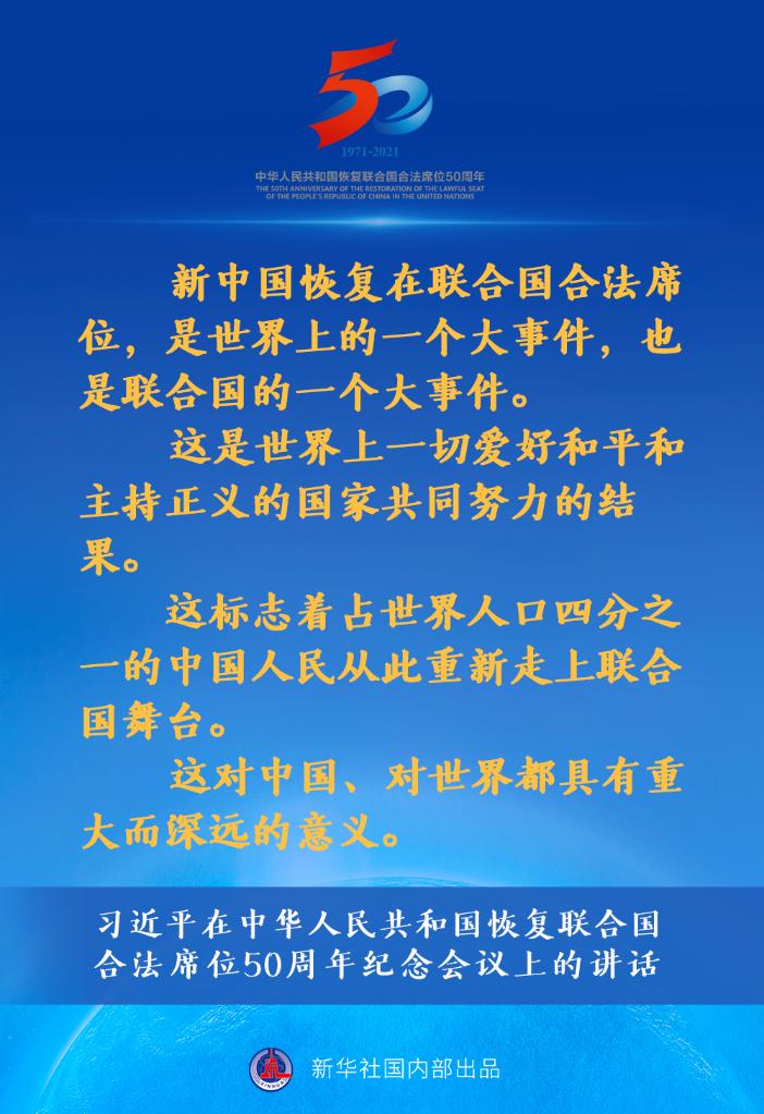 习近平在中华人民共和国恢复联合国合法席位50周年纪念会议上的讲话要点速览 新华网 2021-10-25 19:03 33730 国家主席习近平10月25日在北京出席中华人民共和国恢复联合国合法席位50周年纪念会议并发表重要讲话。讲话有哪些主要内容,一起来看↓ 评论 0 还没有添加任何评论,快去APP中抢沙发吧! 我要评论