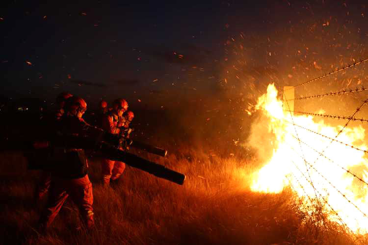 接到火情通报后,锡林郭勒盟森林消防支队迅速派出100名指战员赶赴火场。先遣组16时到达火场后勘查发现,明火已到达中蒙边境界碑附近,火场地形为平原,平均海拔949米,植被以针茅草为主,火线长达20余公里。森林消防部门立即进行布控堵截。