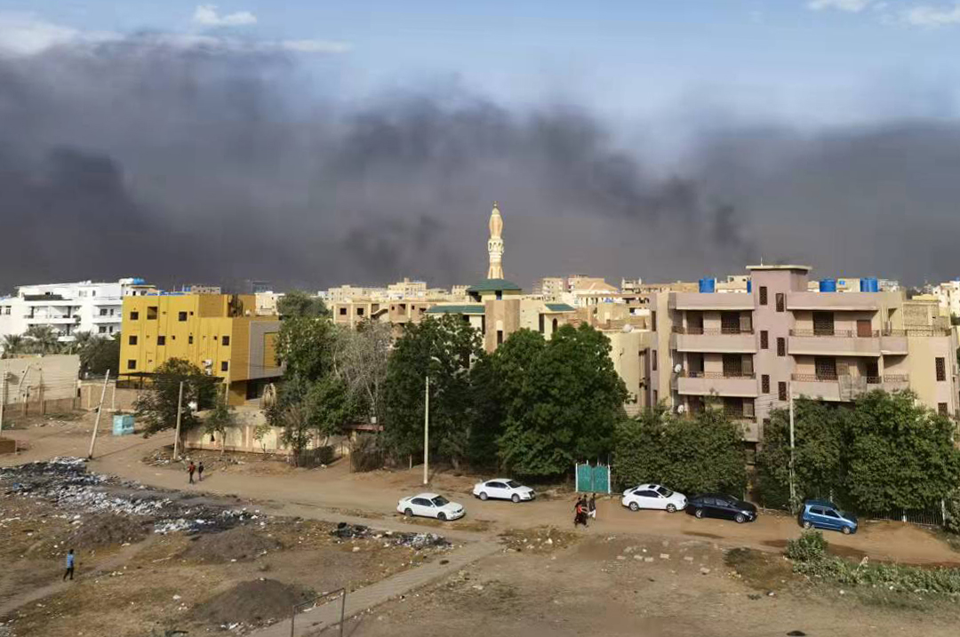 10月25日,苏丹首都喀土穆浓烟滚滚。新华社发