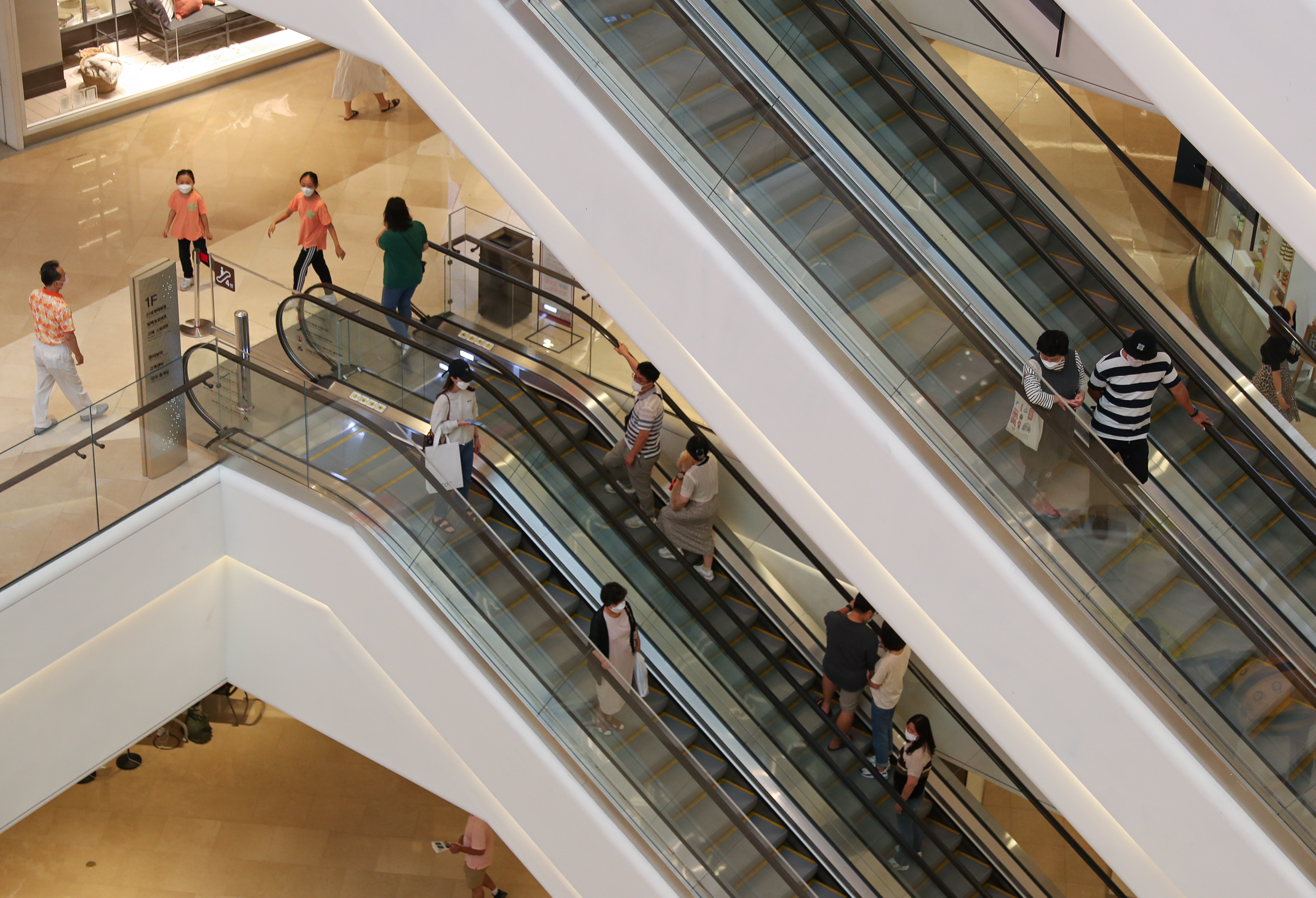 9月24日,人们在韩国京畿道河南市一家商场乘坐扶梯。(新华社记者王婧嫱摄)