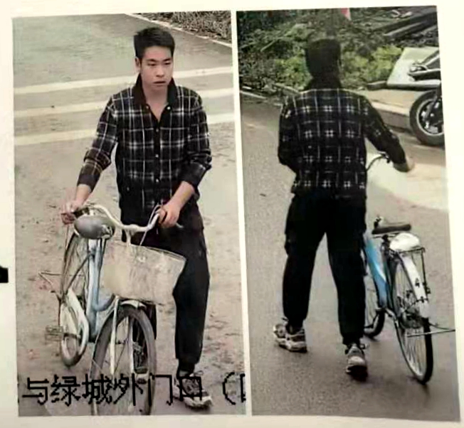 警方详细描述了犯罪嫌疑人特征:男,24岁,安徽砀山人,身高170㎝左右,逃跑时上身穿深色格子衬衣,下身穿白底黑面运动鞋,骑一辆蓝色女士自行车,该自行车的车前带有白色车篓。