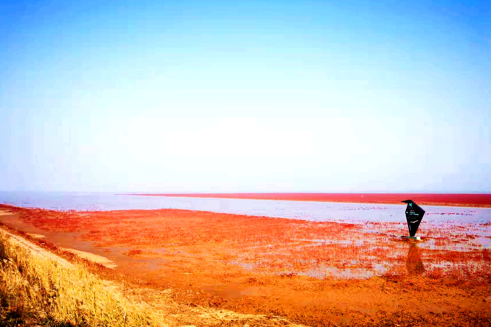 人工引回的“原住民”翅碱蓬,在黄河三角洲形成“红地毯”美景。(新华社记者陈灏 摄)