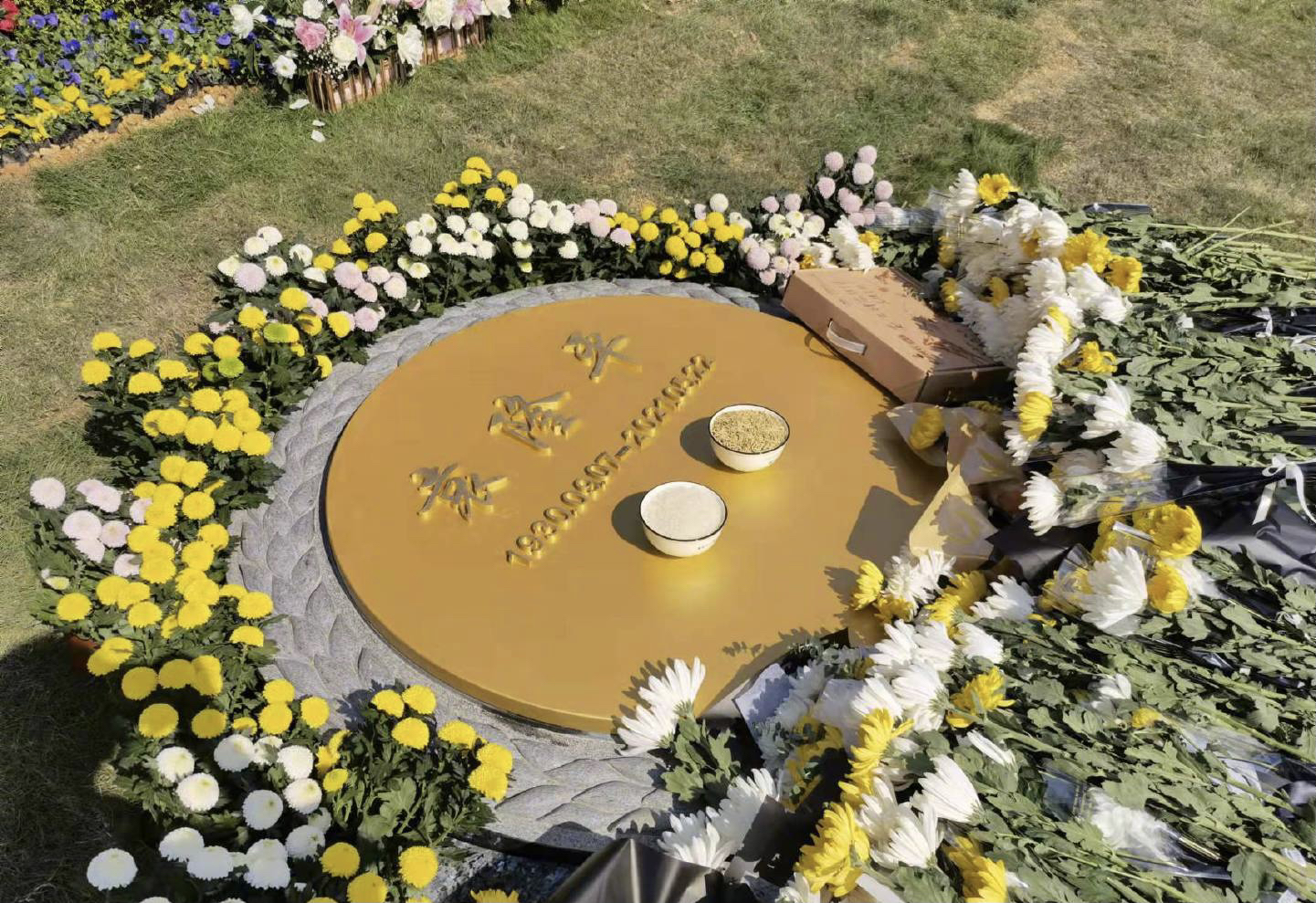 跟骨灰安葬仪式相关的视频在网上传播,诸多细节也再次引发不少人泪崩。比如在安葬仪式上摆放了一把袁老生前最爱的乐器小提琴。一块耸立的大石上刻着他生前说过的“人就像种子要做一粒好种子”。袁隆平院士的墓盖四周环绕着稻穗装饰,墓盖上方端正地摆放着两只碗,一只碗盛满稻粒,另外一只碗盛满白米。