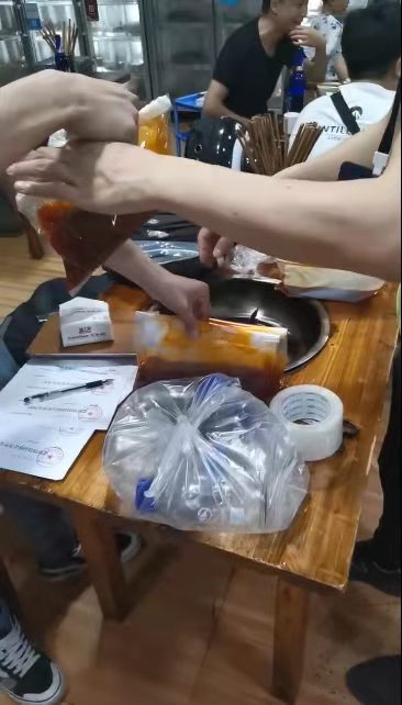 同时,民警调查发现,张某等人还聘请唐某某、杨某某负责对火锅锅底进行回收过滤,将油脂、水份及沉淀物进行分离。5月13日晚,被内江市公安局东兴区分局民警及内江市东兴区市场监督管理局工作人员当场查获。