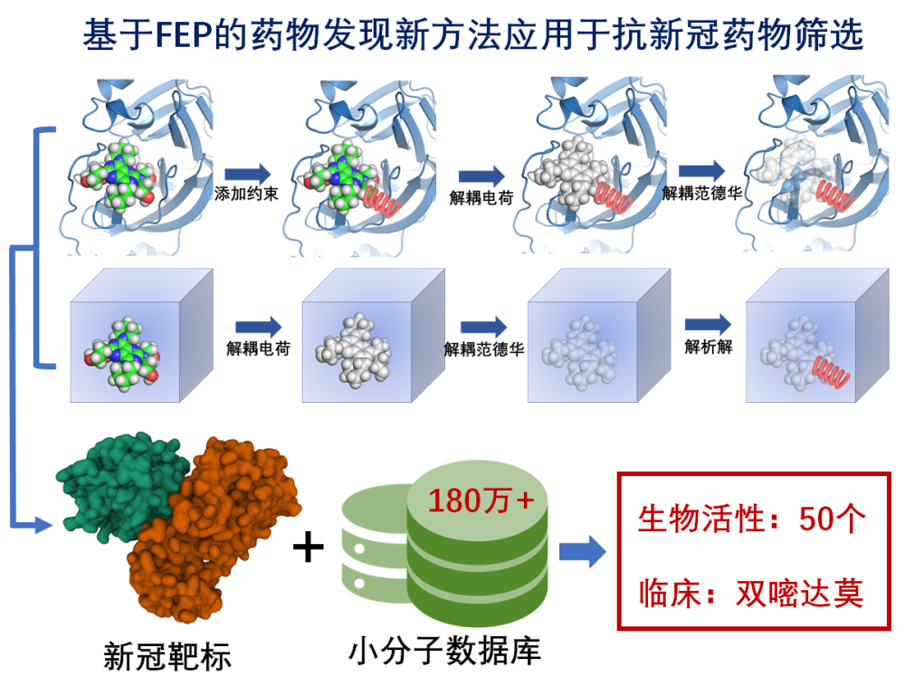 ↑基于FEP的药物发现新方法应用于抗新冠药物筛选示意图