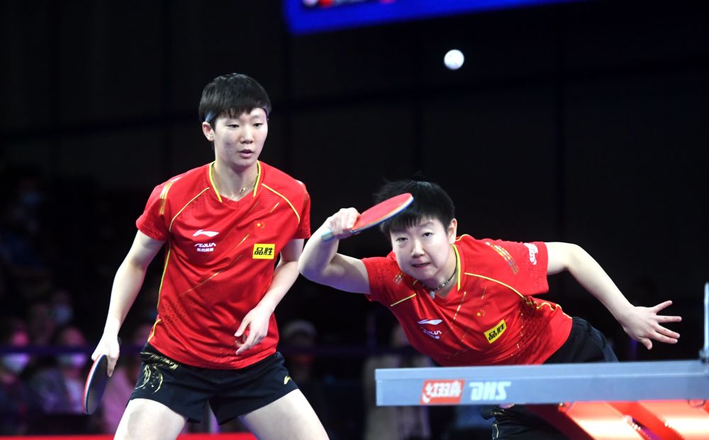 11月26日,孙颖莎(右)/王曼昱在比赛中。新华社记者吴晓凌摄