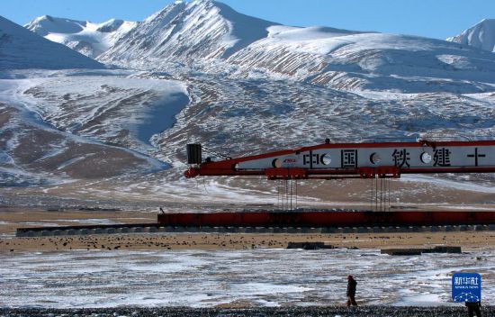 青藏铁路在架桥施工中(2004年资料照片)。新华社记者 觉果 摄