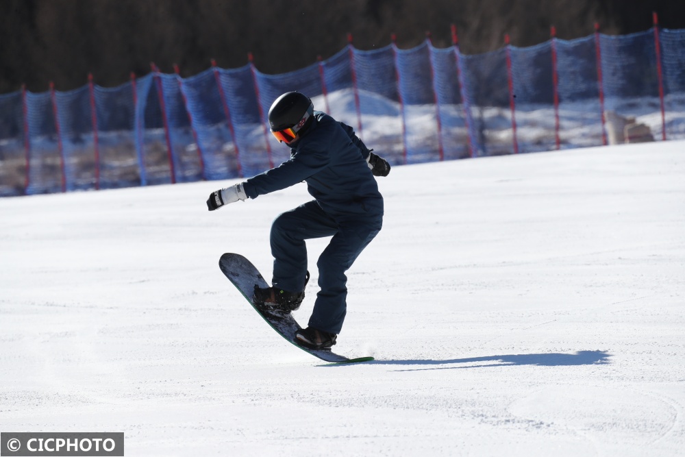 ↑2021年11月25日,冰雪运动爱好者在内蒙古自治区赤峰市一家滑雪场滑雪。CICPHOTO/李富 摄