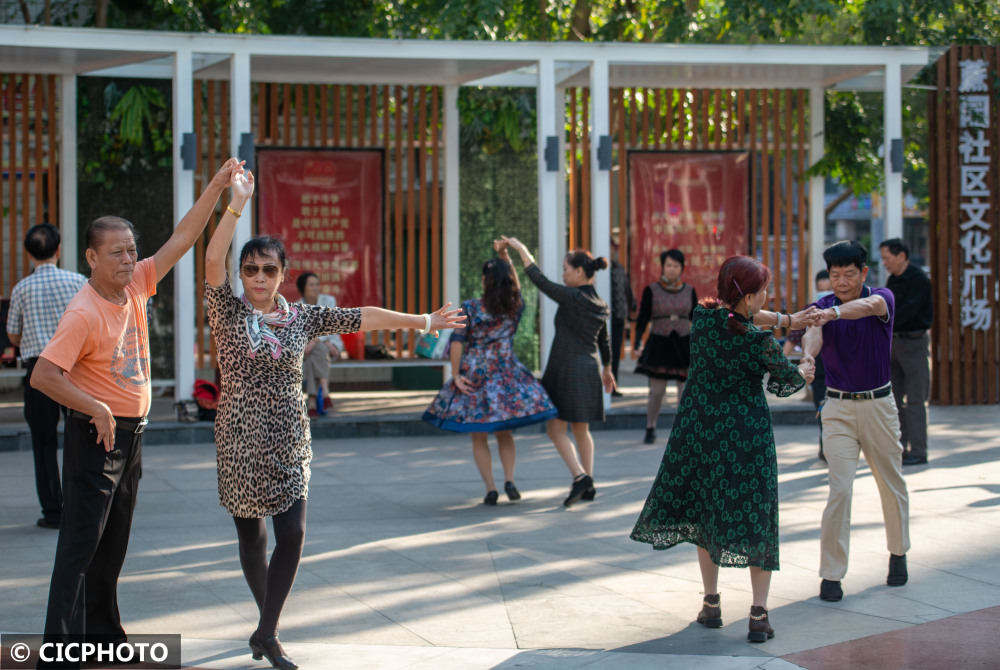 ↑2021年12月1日,海南省琼海市的老年人在蔗园社区文化广场跳舞健身。CICPHOTO/蒙钟德 摄