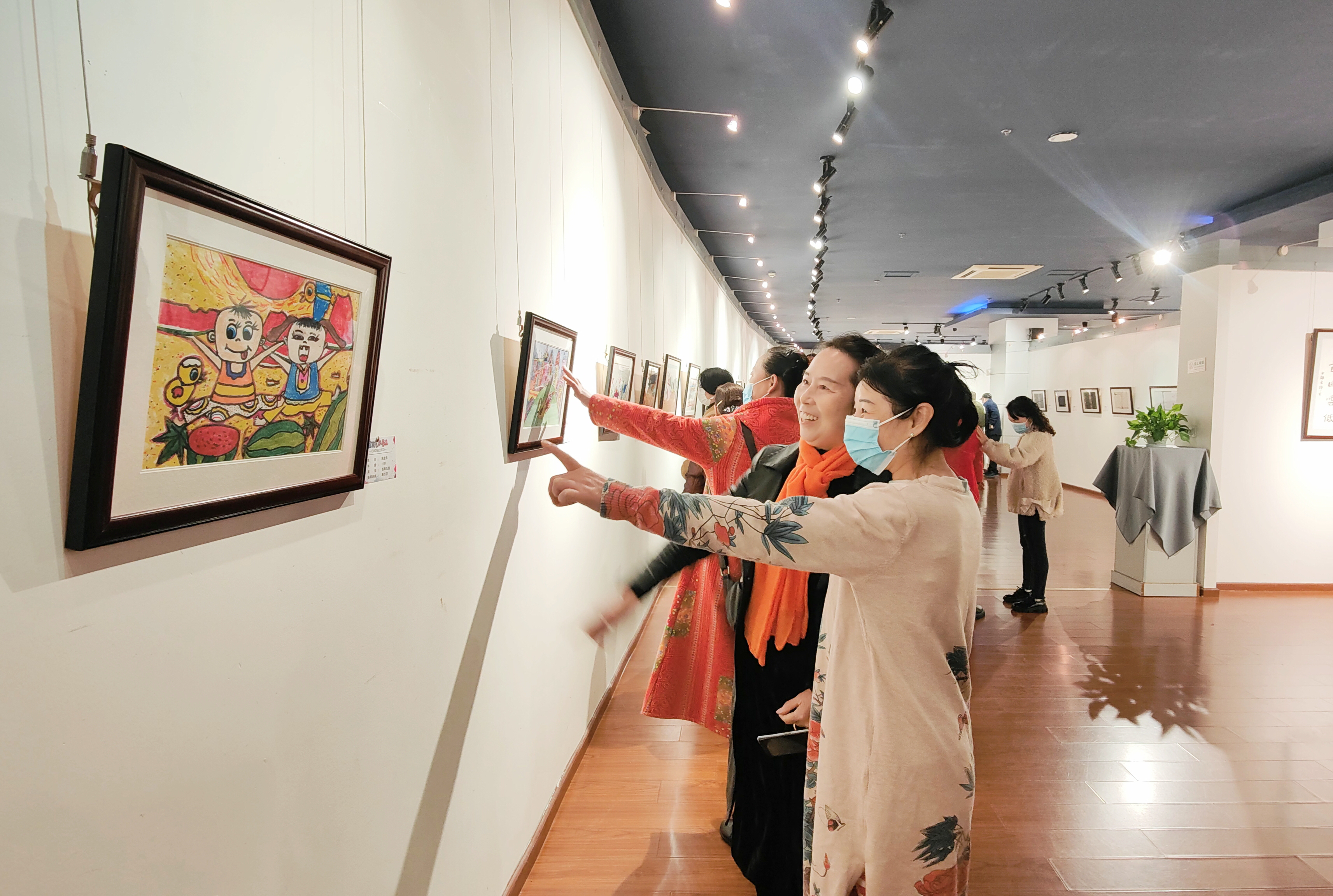 展览现场,一幅幅生动又不失童趣的作品让观众不时举起手机拍照、赞叹连连。参展作品题材多样,有的聚焦中华优秀传统文化,展现书法之美;有的聚焦新时代的美好生活,以孩子视角画出新中国的瞩目成就;还有一些作品用多彩的油墨,表达梦想和理想。