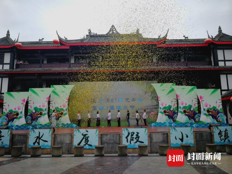 据悉,三道堰自清代中叶水陆码头兴盛,逐步形成了端午节赛龙舟的传统,至今已举办了64届端午龙舟会。
