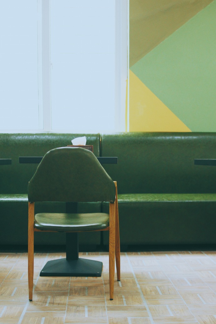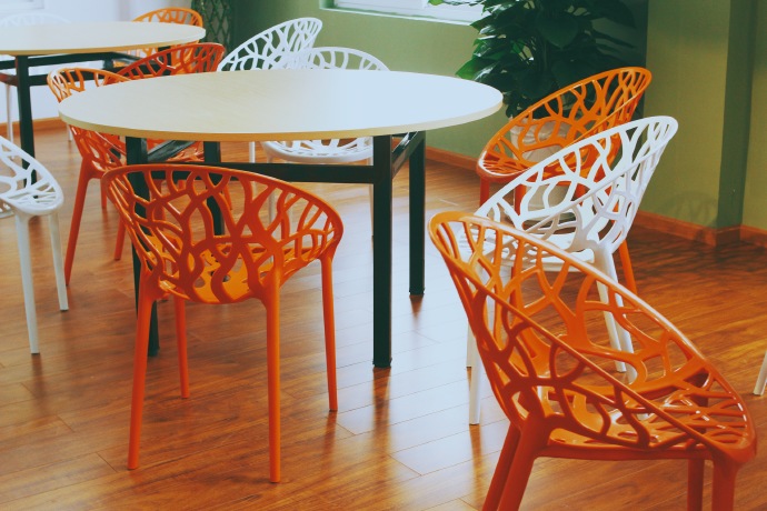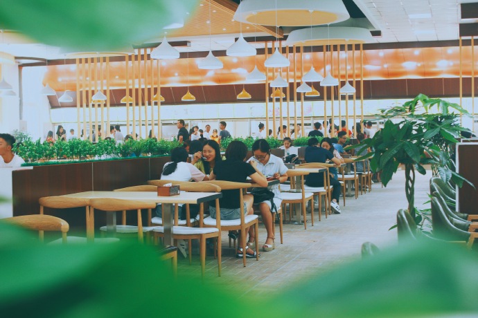 食堂里色彩的搭配,感觉也是清新范十足,你的学校也有这样的食堂吗?