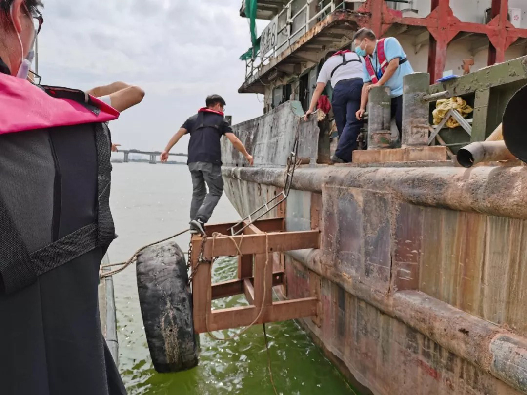 2021年9月,中央第四生态环境保护督察组在洪奇沥水道现场检查洗泥船只。图片来源:生态环境部