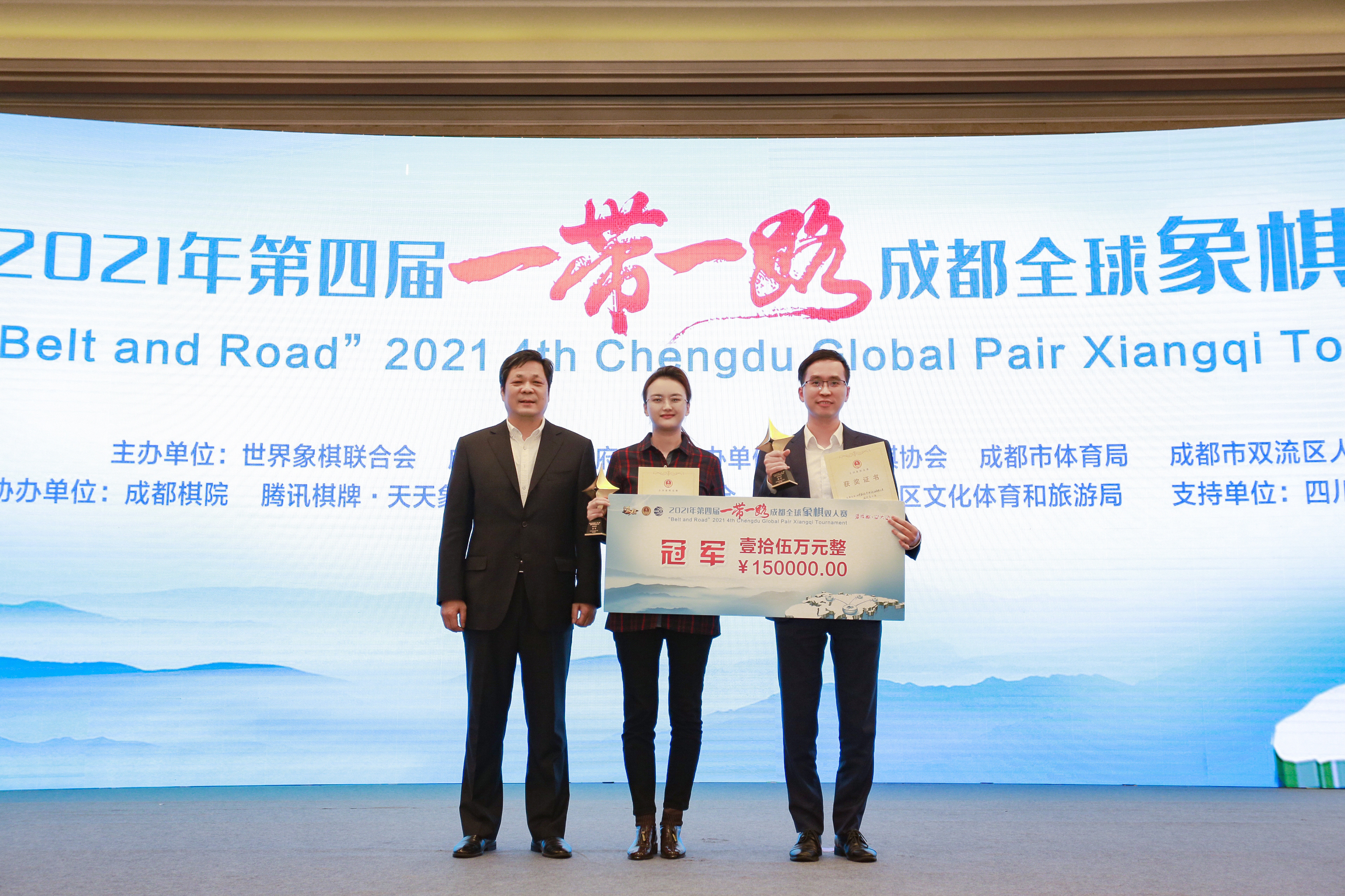 12月18日,为期两天的2021年第四届“一带一路”全球象棋双人赛在成都落幕。最终,国内混双组比赛的冠军由赵鑫鑫/唐丹组合夺走,奖金15万元,在线上同步进行的海外双人组比赛中,郭凤达(中国)/嘉涵(马来西亚)获得第一名。