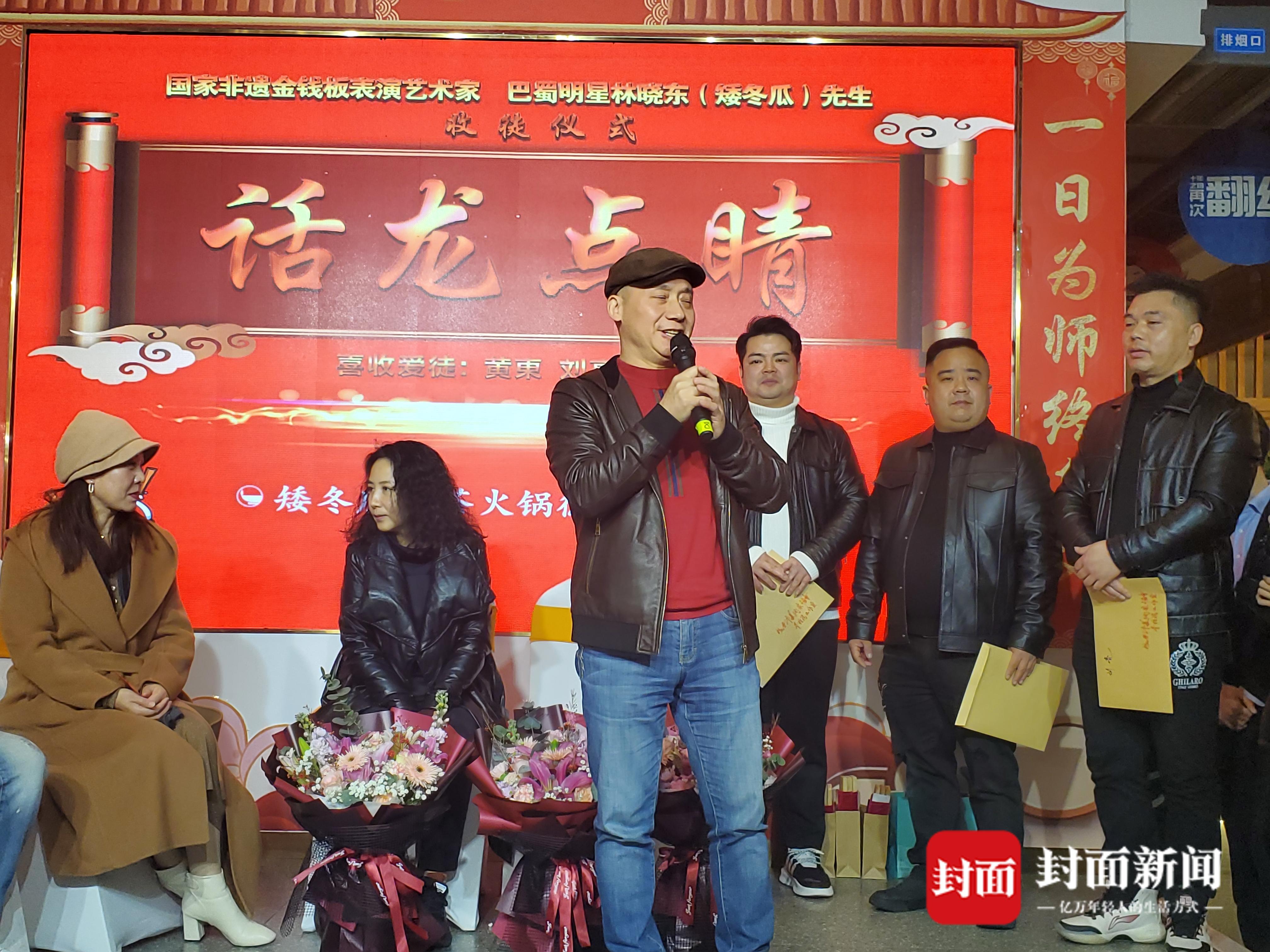 收徒仪式结束后,封面新闻记者采访了林晓东。他说:“过去,我从不收徒。今天,我又破例了第一次收了徒弟。其原因是,目前,因为会表演四川金钱板的演员实在太少了,我们四川这么大一个文化大省只有不到200人会表演金钱板,我心里急,怕失传,今天,我才决定破例收徒。”