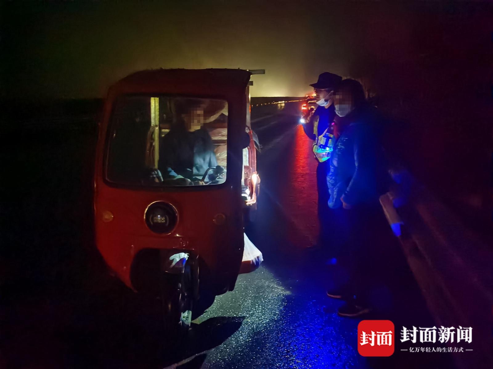 民警调查发现,三轮车驾驶人彭某(72岁)搭载了孙某(65岁)一人,购买猪肉后从达州市沙坝场出发前往开江县任市镇,天黑后,两人为了“抄近道”,从讲治收费站偷偷闯入高速公路。出警民警对彭某和孙某进行了批评教育,责令其作出书面保证,同时通知其所在乡镇道安办加强监管。
