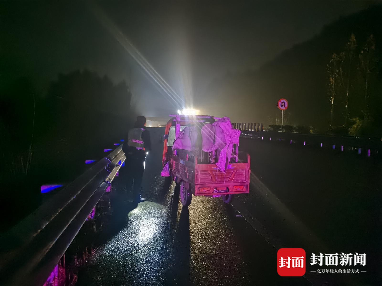 当天傍晚,四川省公安厅交通警察总队高速公路五支队十四大队开江警务组接到报警电话称:有一辆三轮车闯入高速公路,而且一直占用应急车道逆行。接警后,值班民警傅相毅立即带领辅警曾彬出发,寻找闯入的三轮车。