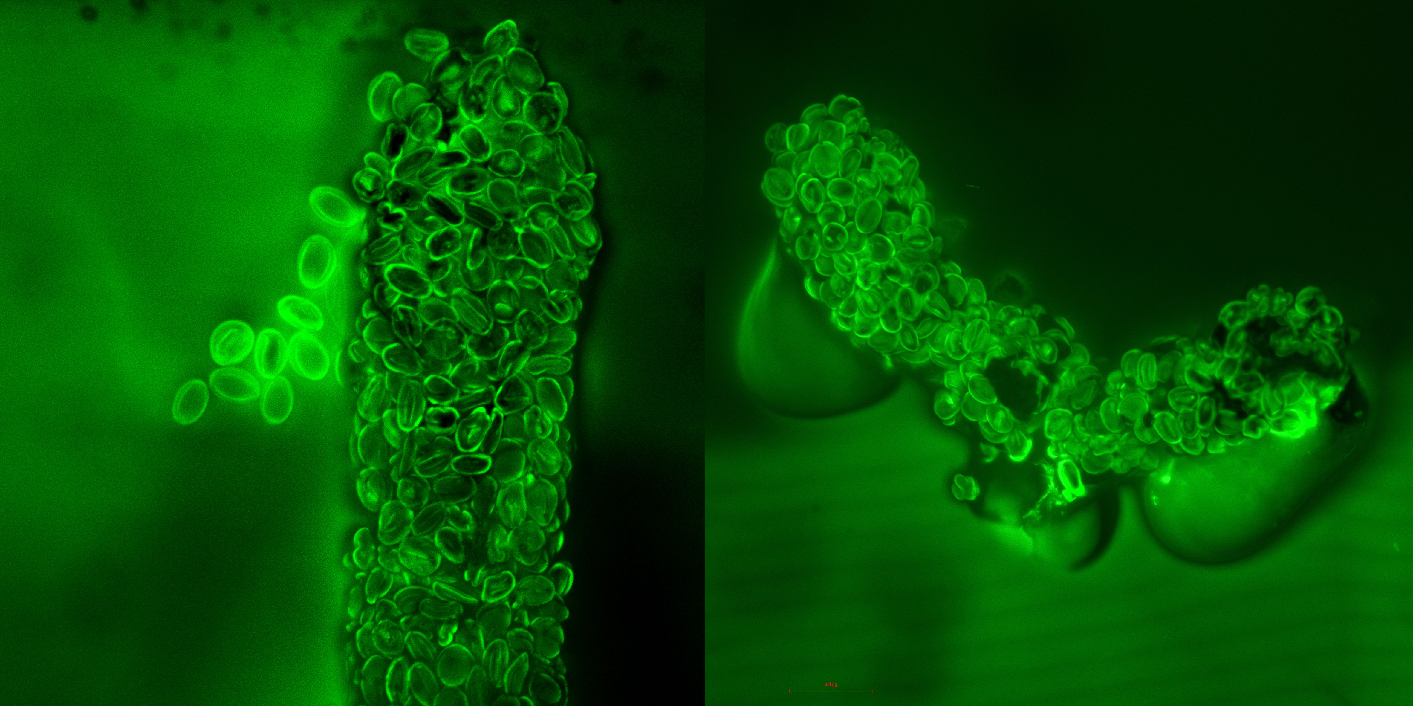 两枚昆虫粪便化石在激光共聚焦显微镜下的图像。中科院南古所供图