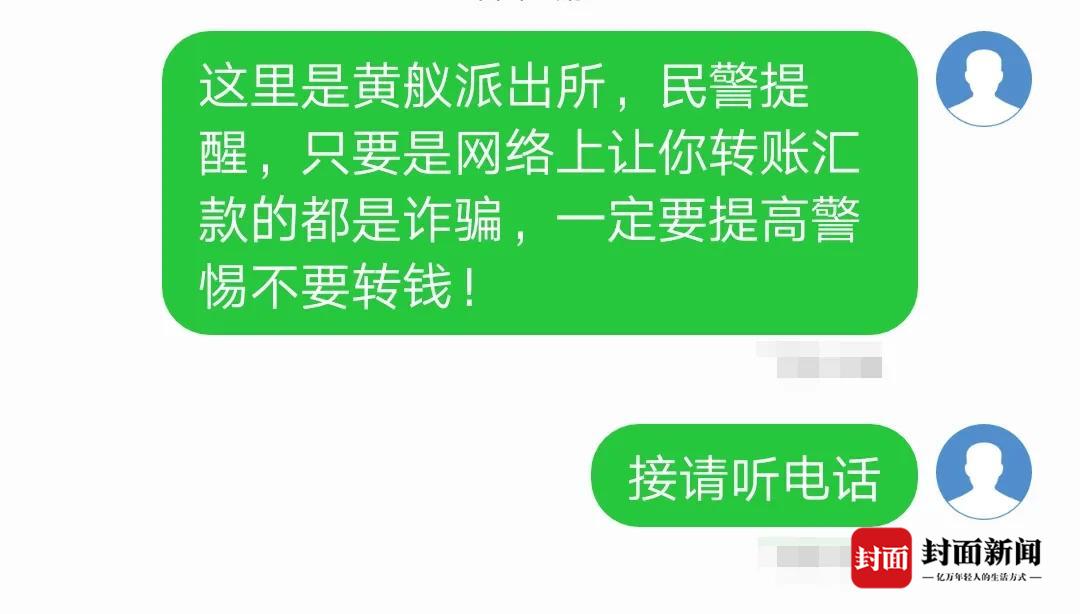根据黄女士反映的情况,民警迅速判定黄女士的母亲王女士可能遭遇了电信诈骗,于是立即通过短信向其发送反诈预警信息,但对方始终没有回应。