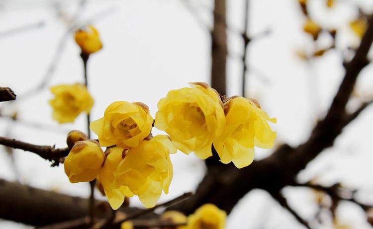 在历史上,分不清“蜡梅”与“腊梅”的,大有人在。在明代李时珍的《本草纲目》中,记载为“蜡梅,释名黄梅花,此物非梅类”。但是在《本草纲目》的参考书目《救荒本草》中,又以“腊梅”来称呼: “腊梅花多生南方,今北土亦有之。其树枝条颇类李,其叶似桃,叶宽大纹脉微 粗。开淡黄花,味甘微苦。救荒采花,熟水浸淘净,油盐调食”。同样在明代徐光启的《农政全书》中,也曾写作“腊梅”。虽说“腊梅”也不是完全有误的写法,但是“蜡梅”,确实能够更准确地表现“色似蜜蜡”的特点。黄庭坚写蜡梅“香气似梅花,似女工撚(读niǎn,指用手指揉搓)蜡所成”,苏轼写蜡梅“蜜蜂采花作黄蜡,取蜡为花亦其物”,这些诗句都道出了蜡梅的“色似蜜蜡”。