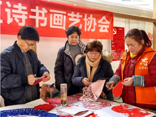 茶馆正中央是一张长桌,居民可在此剪纸书法或宣讲学习。不仅能拉近居民距离,还能给街坊邻里提供一个喝茶休息,闲谈交流、举办活动的“新天地”。