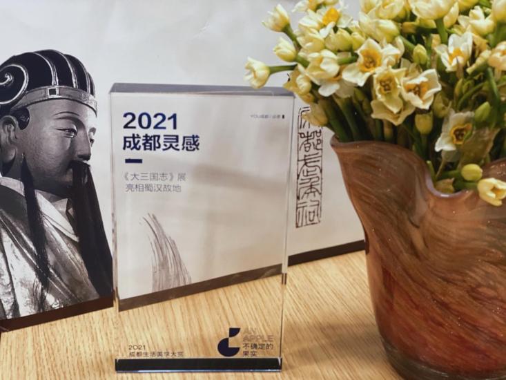 也是在1月24日,由YOU成都举办的“成都生活美学大赏”公布结果,成都武侯祠博物馆的“大三国志展”荣获“成都灵感奖”。其获奖理由是:三国文化在成都有着丰厚的遗产资源和社会基础。“大三国志展”来到成都,并在有“三国圣地”美称的成都武侯祠展出,营造出浑然一体的良好氛围,二者相得益彰,别具意义。