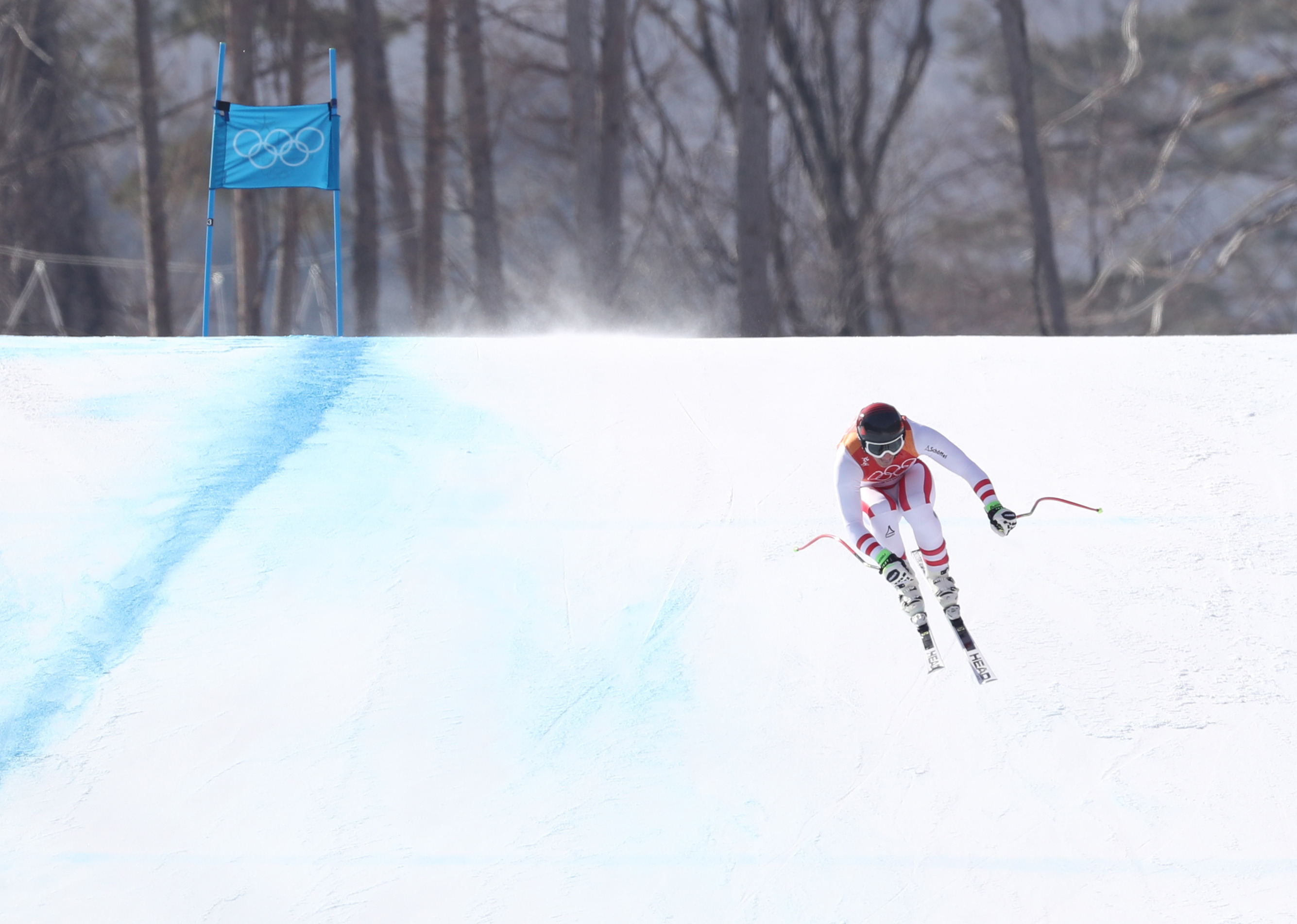 2018年2月13日,平昌冬奥会高山滑雪男子超级大回转比赛在旌善高山滑雪中心举行。奥地利选手迈尔以1分24秒44的成绩获得冠军。新华社记者吕小炜摄