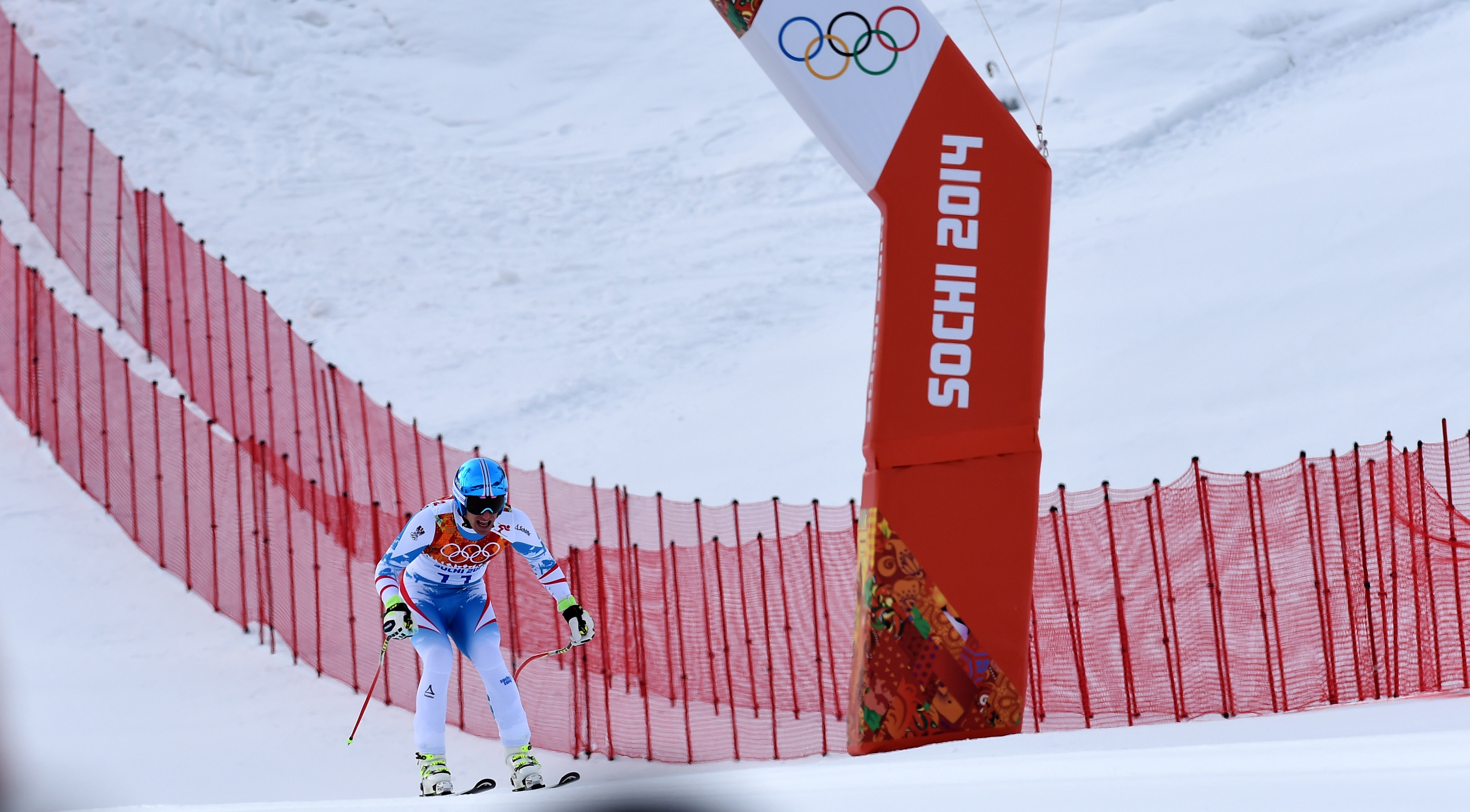 2014年2月9日,在索契冬奥会高山滑雪男子滑降比赛中,奥地利选手马蒂亚斯·迈尔以2分06秒23的成绩夺冠。新华社记者李钢摄