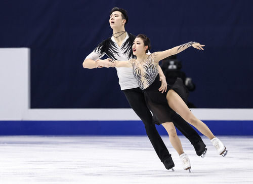 2020年2月7日,中国组合王诗玥/柳鑫宇(左)在四大洲花样滑冰锦标赛冰舞自由舞比赛中。新华社记者王婧嫱摄