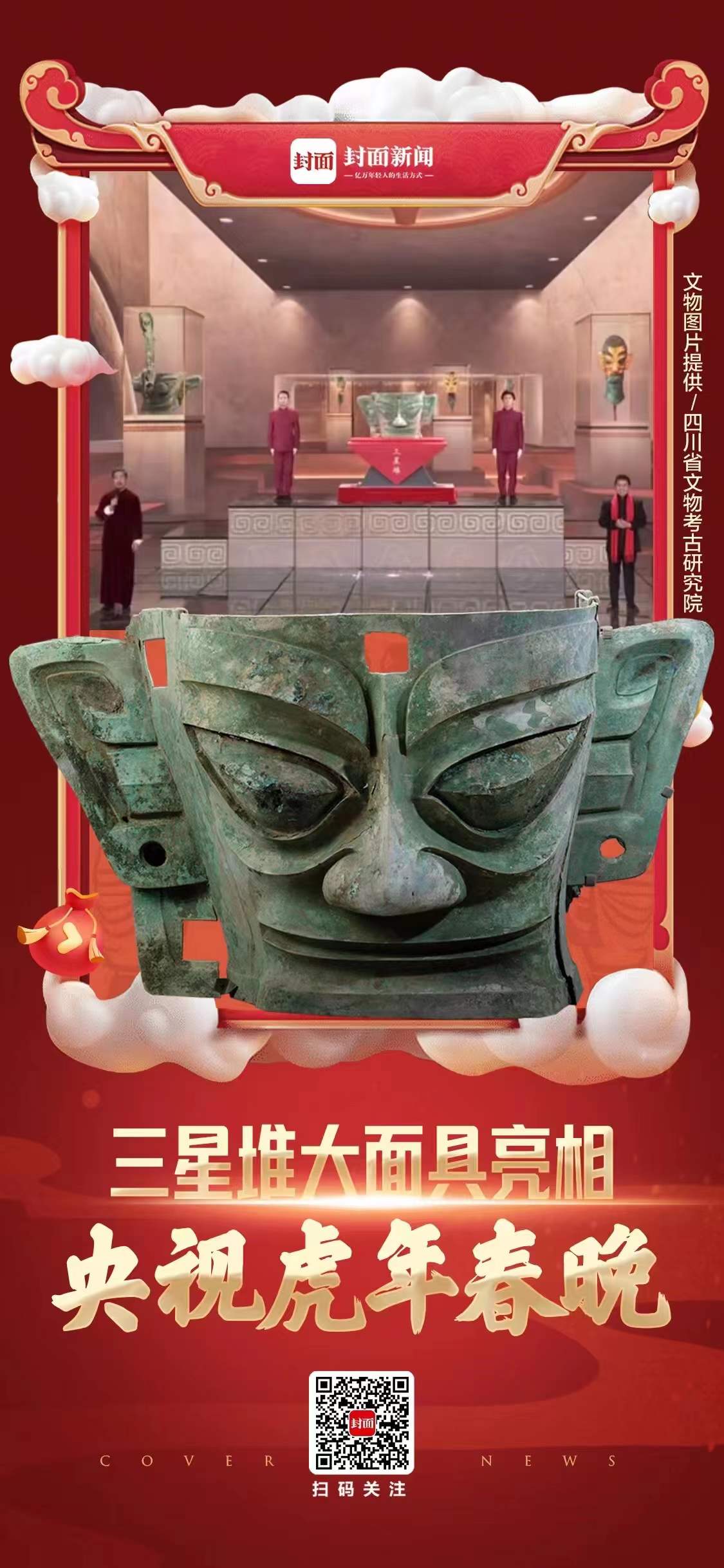 1月31日晚,农历春节除夕夜,三星堆遗址出土的青铜大面具登上央视春晚的舞台。这件目前三星堆遗址出土形制最完整、体量最大的大型青铜面具,在《国家宝藏》001号讲解员张国立和三星堆考古研究所所长冉宏林的讲解之后揭开神秘面纱,带给观众的震撼不言而喻。节目顺利播出之后,负责文物运输及安保工作的张蕊心情久久难以平静。