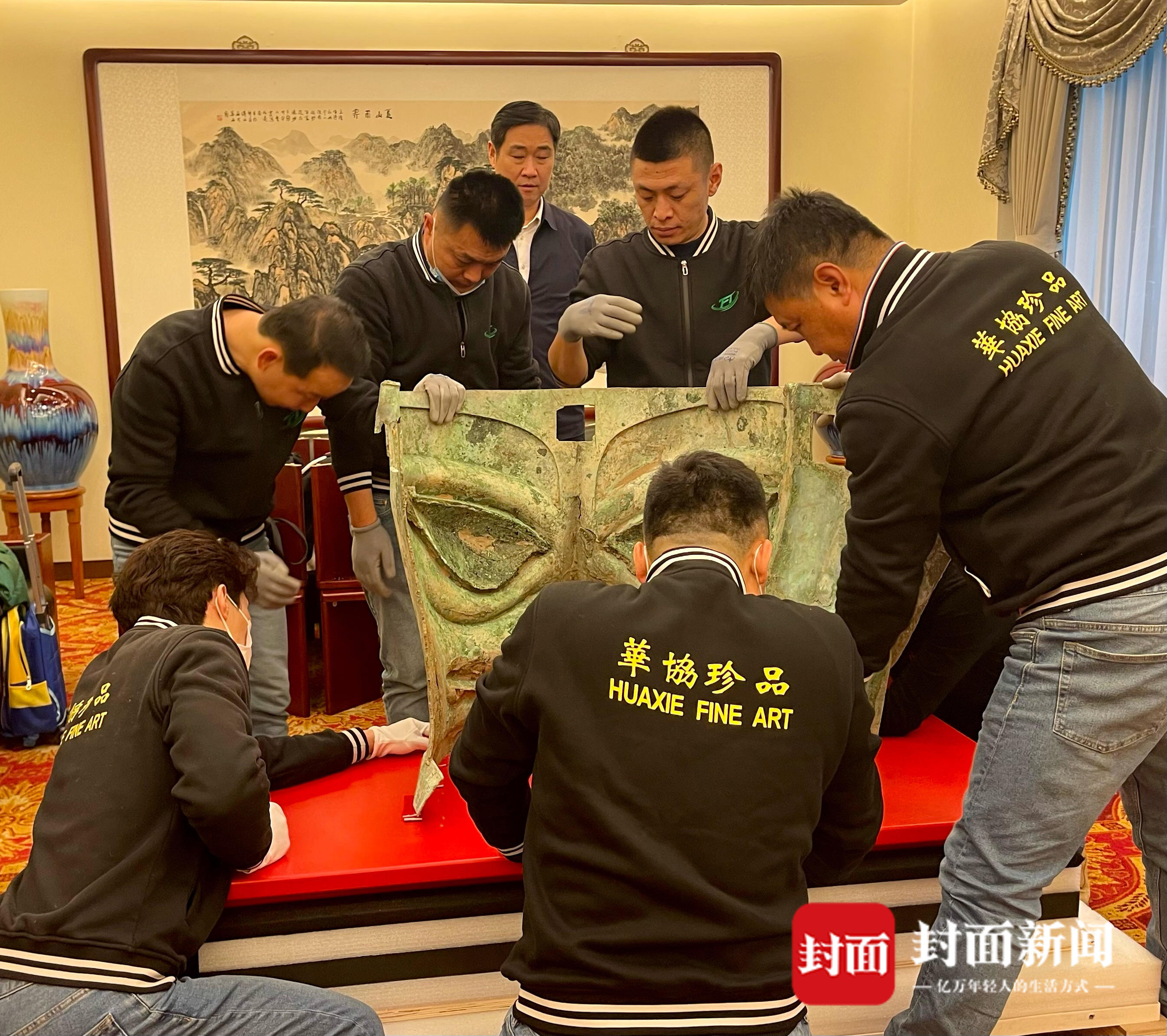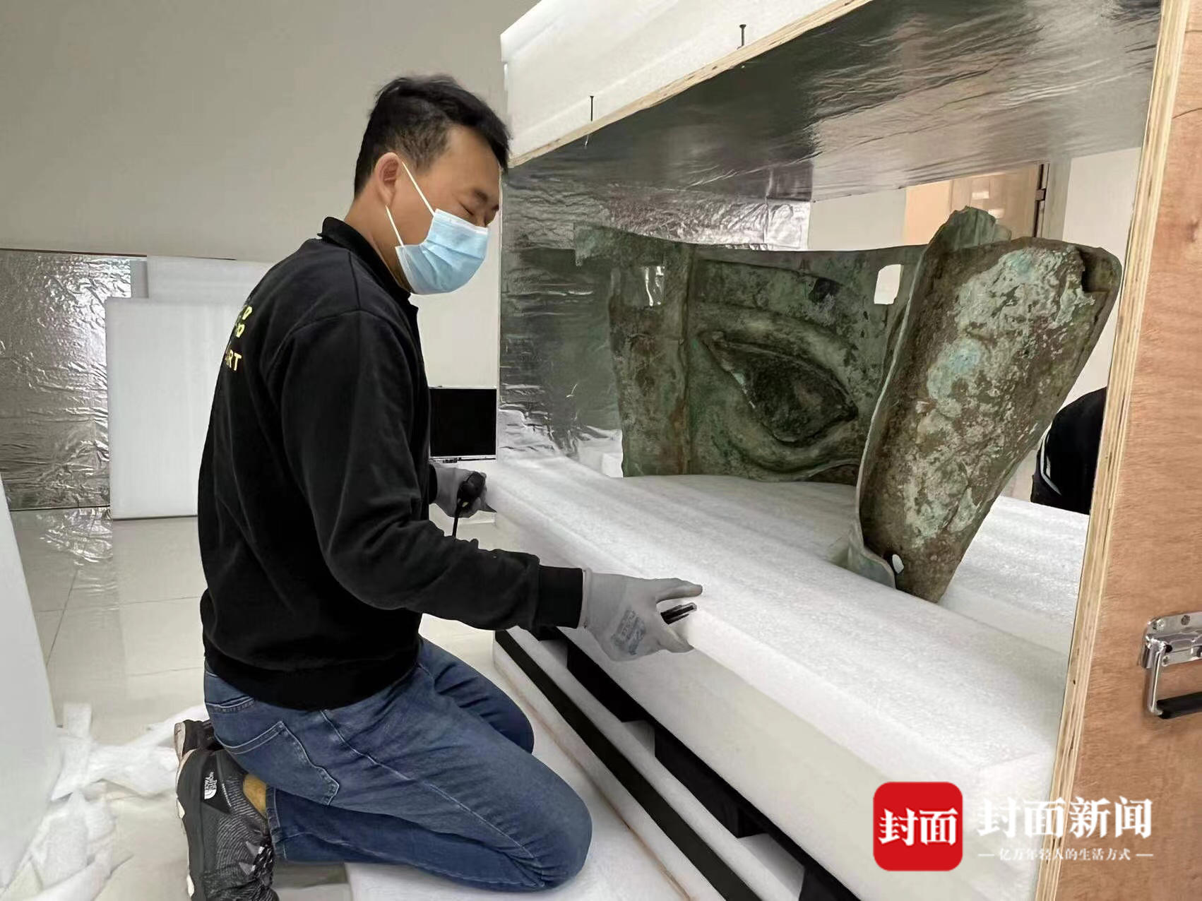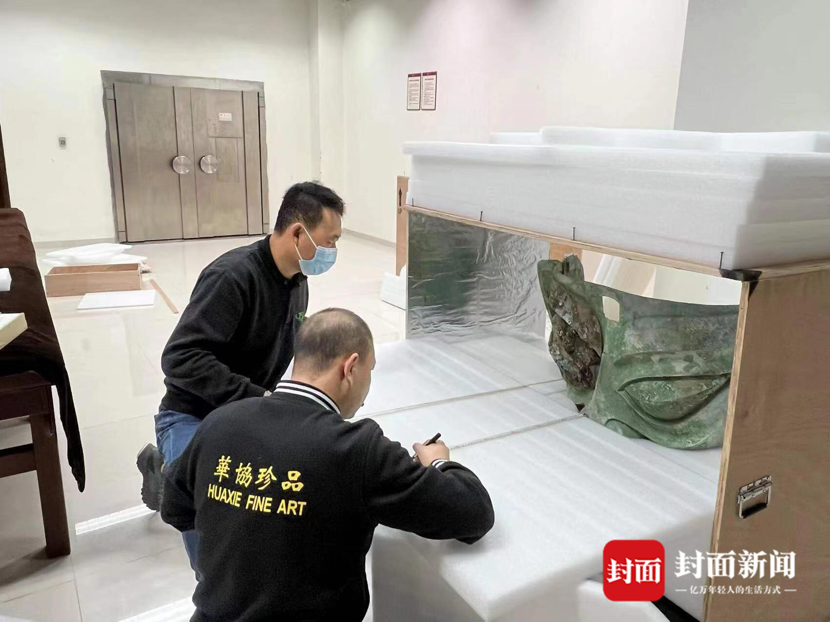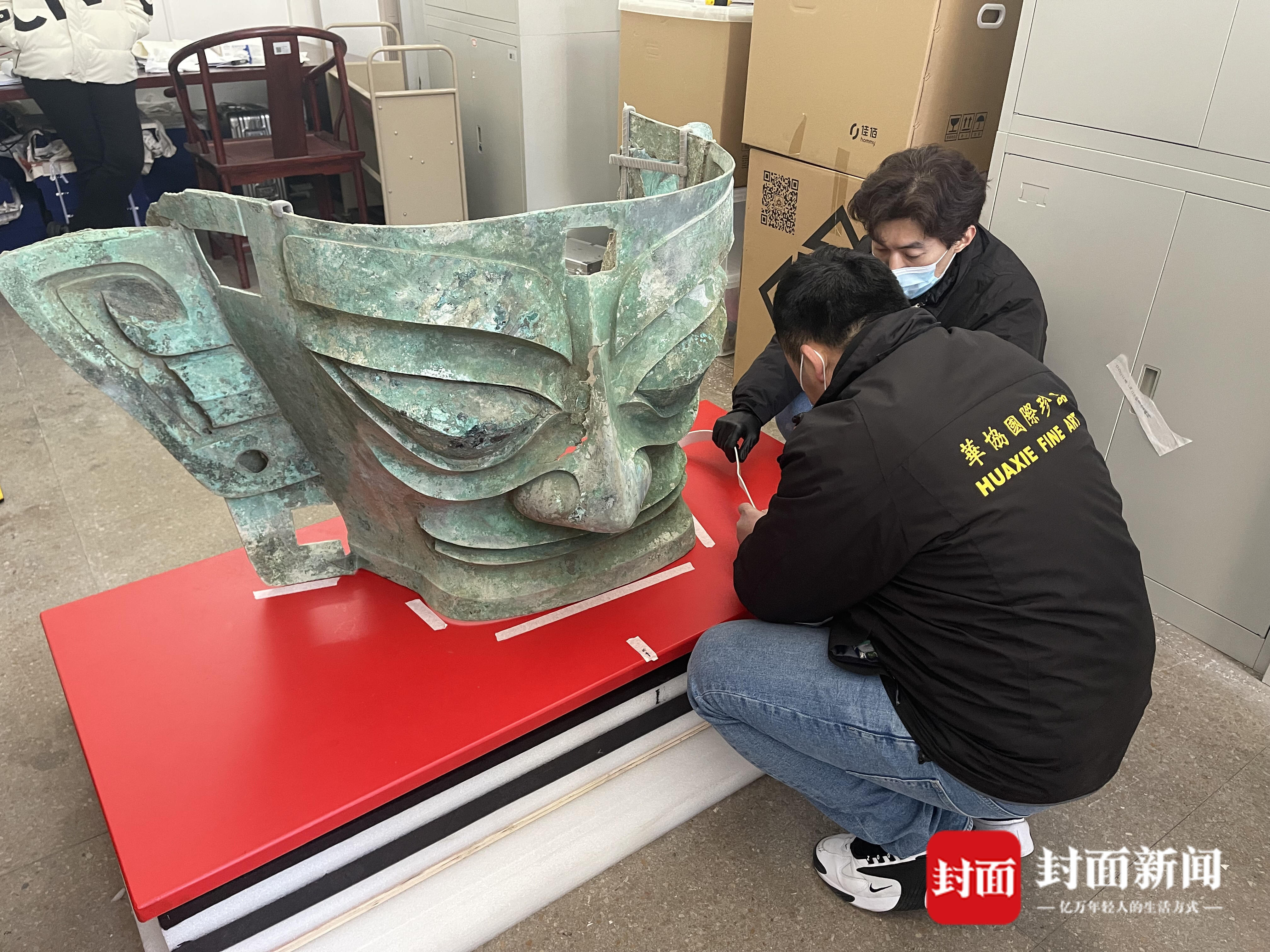 大面具如何跨越将近3000公里、从三星堆搬运至央视春晚的舞台?路途遥远、雨雪交加,如何确保文物的安全?华协国际珍品货运服务有限公司展览部经理张蕊接受了封面新闻记者的采访,讲述了运输文物背后的故事。3D扫描文物数据、量身定制包装盒、独立的温湿度控制系统,这些高科技的背后是工作人员对文物的敬畏与爱护。